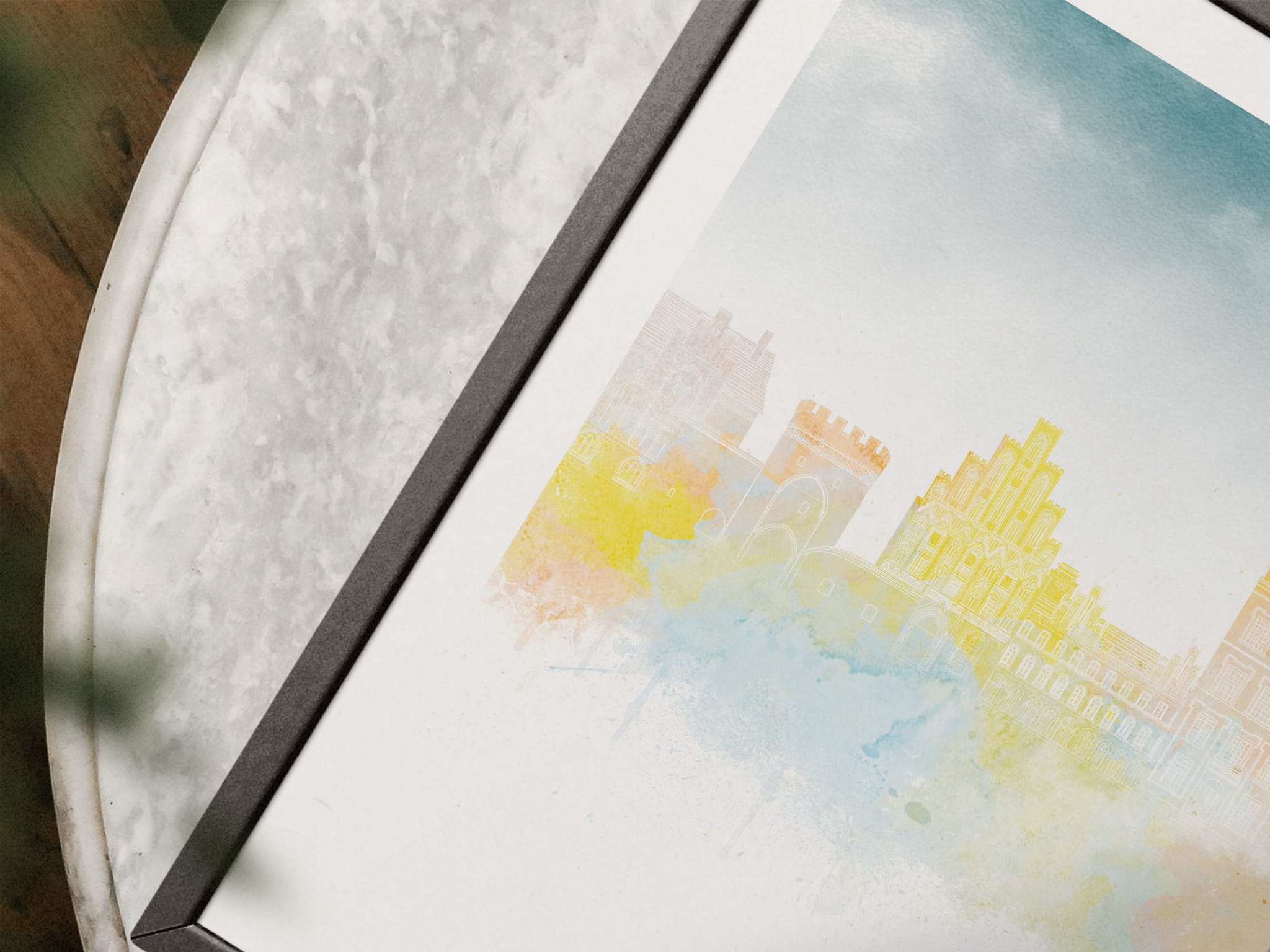 Plakat do salonu skylines Toruń w stylu Watercolor/ Akwarelowym