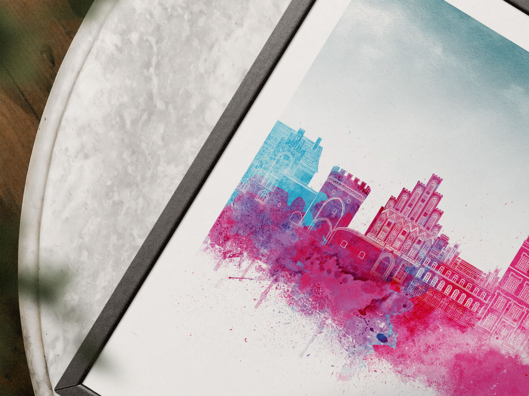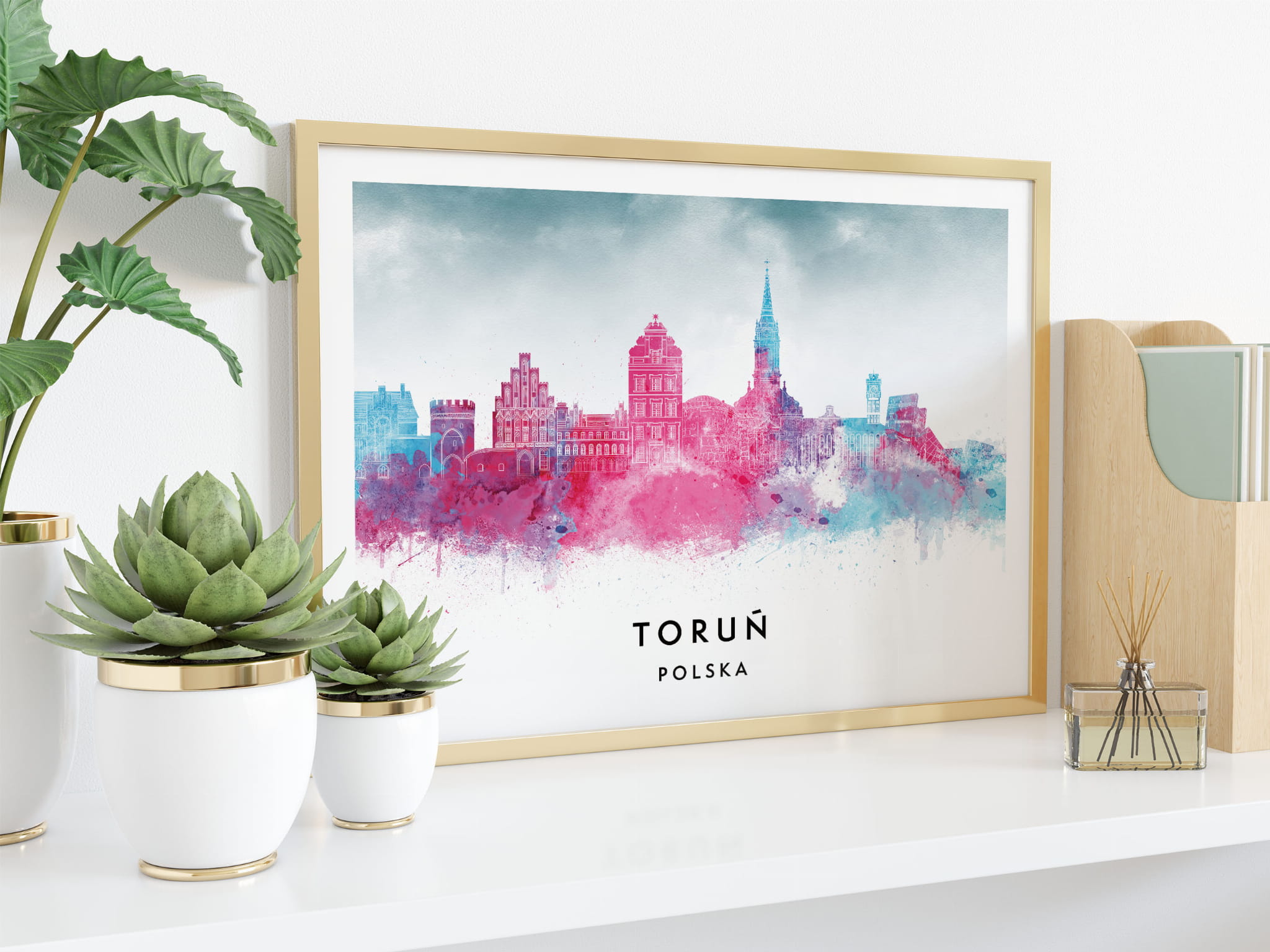 Plakat do salonu skylines Toruń w stylu Watercolor/ Akwarelowym