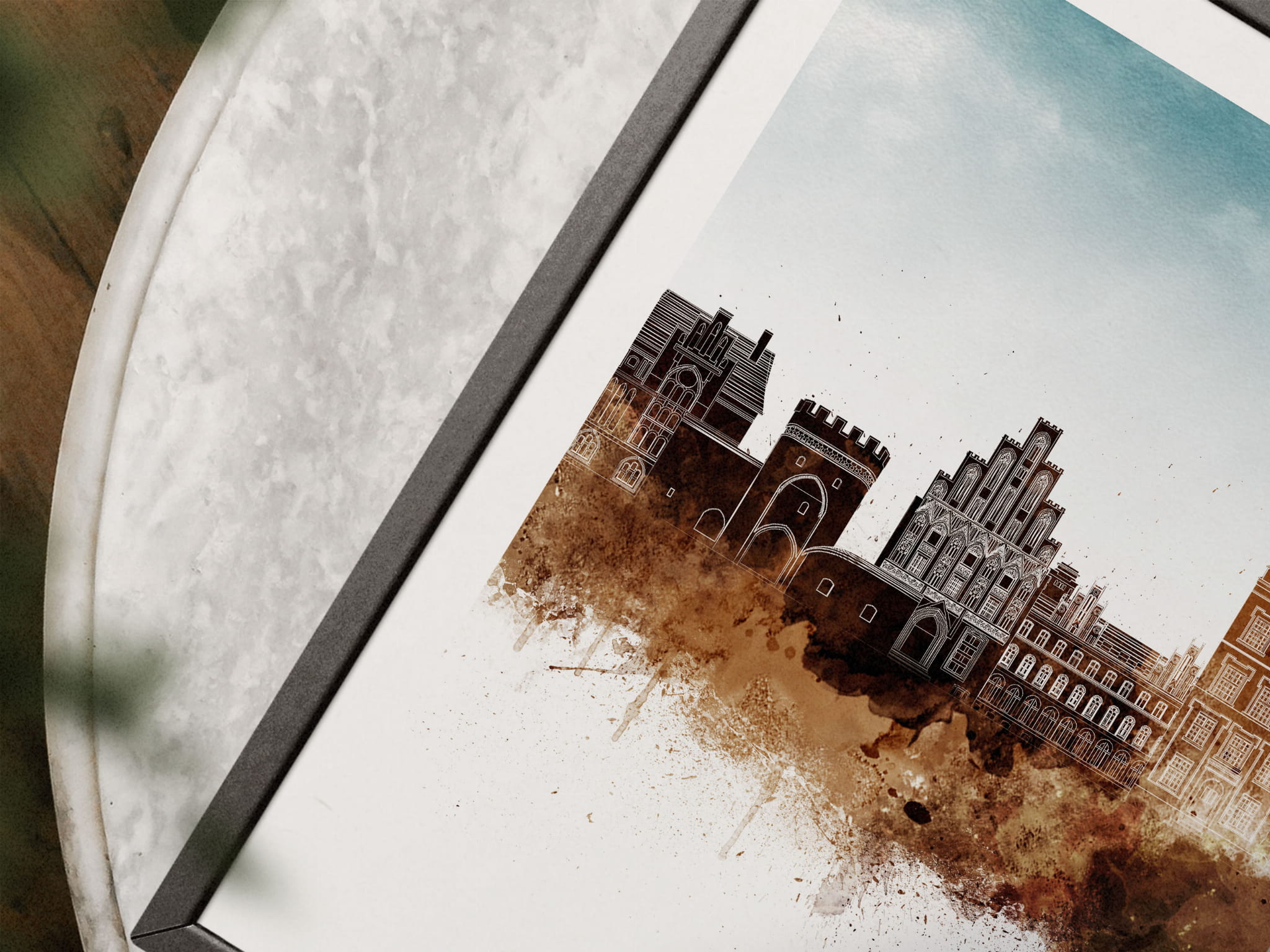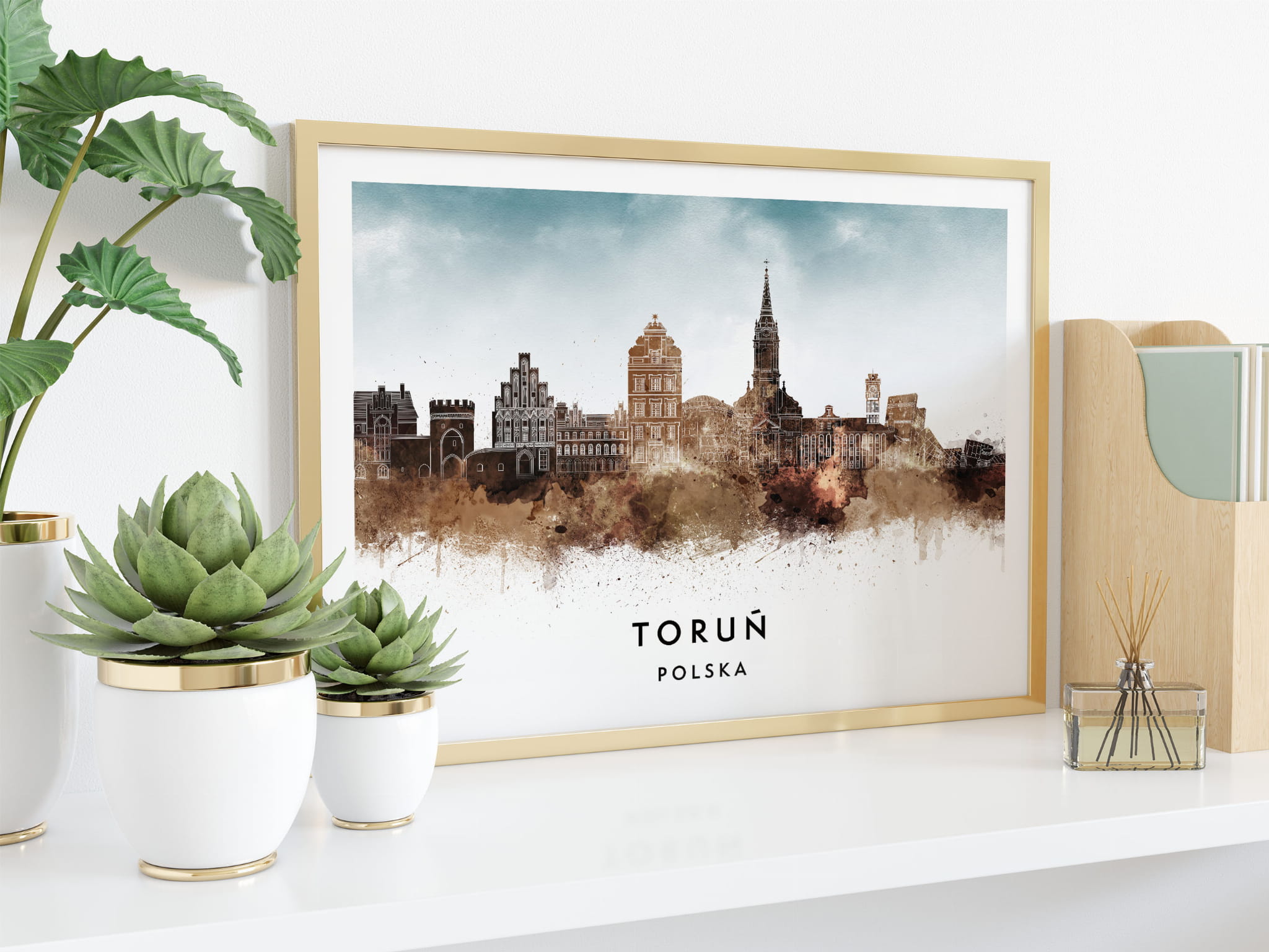 Plakat do salonu skylines Toruń w stylu Watercolor/ Akwarelowym