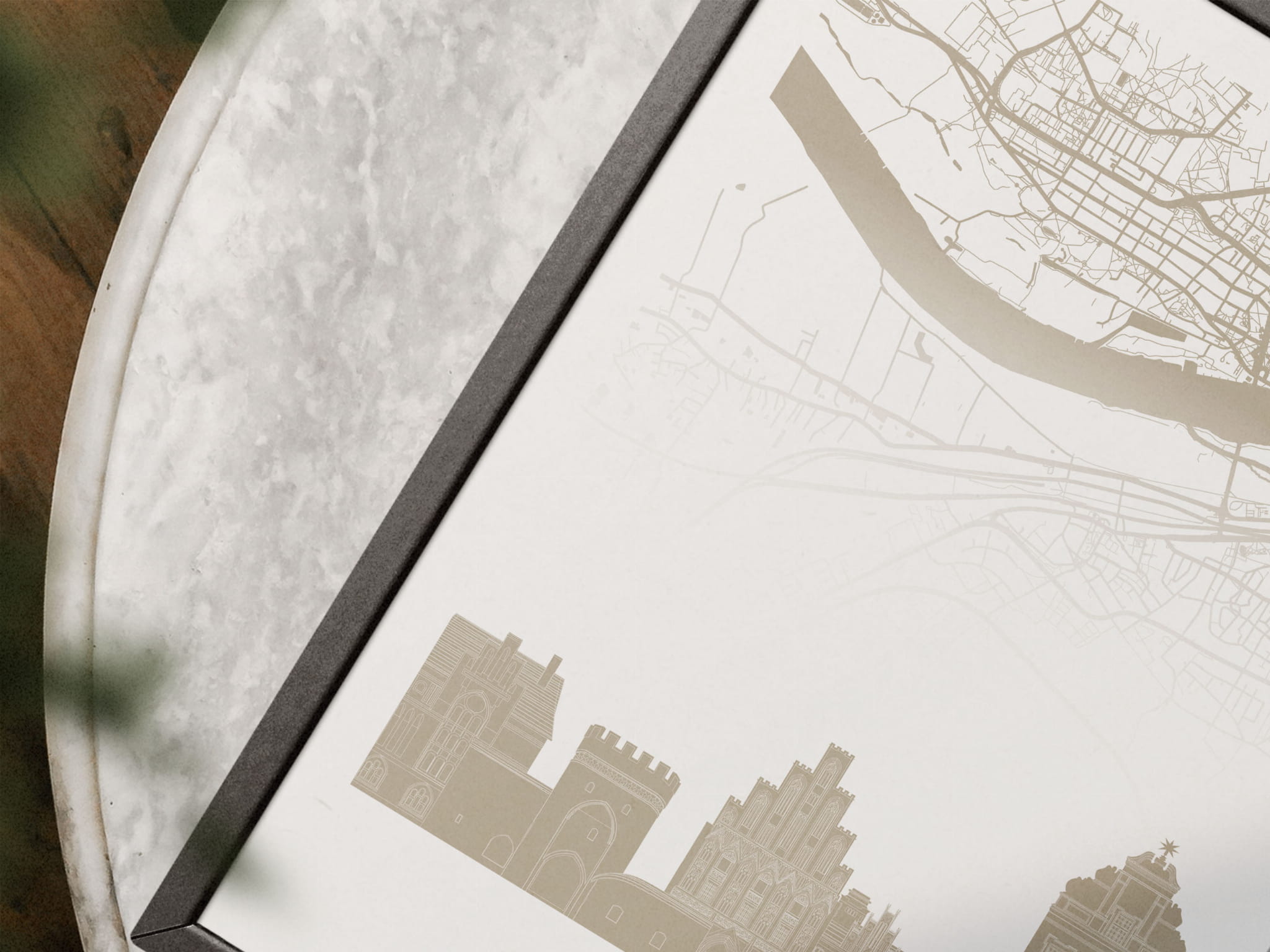 Projektując plakaty z tej serii, postawiliśmy na kolory i charakterystyczne symbole miast.  Taki zestaw podróżniczych plakatów będzie doskonałym uzupełnieniem pomieszczenia.