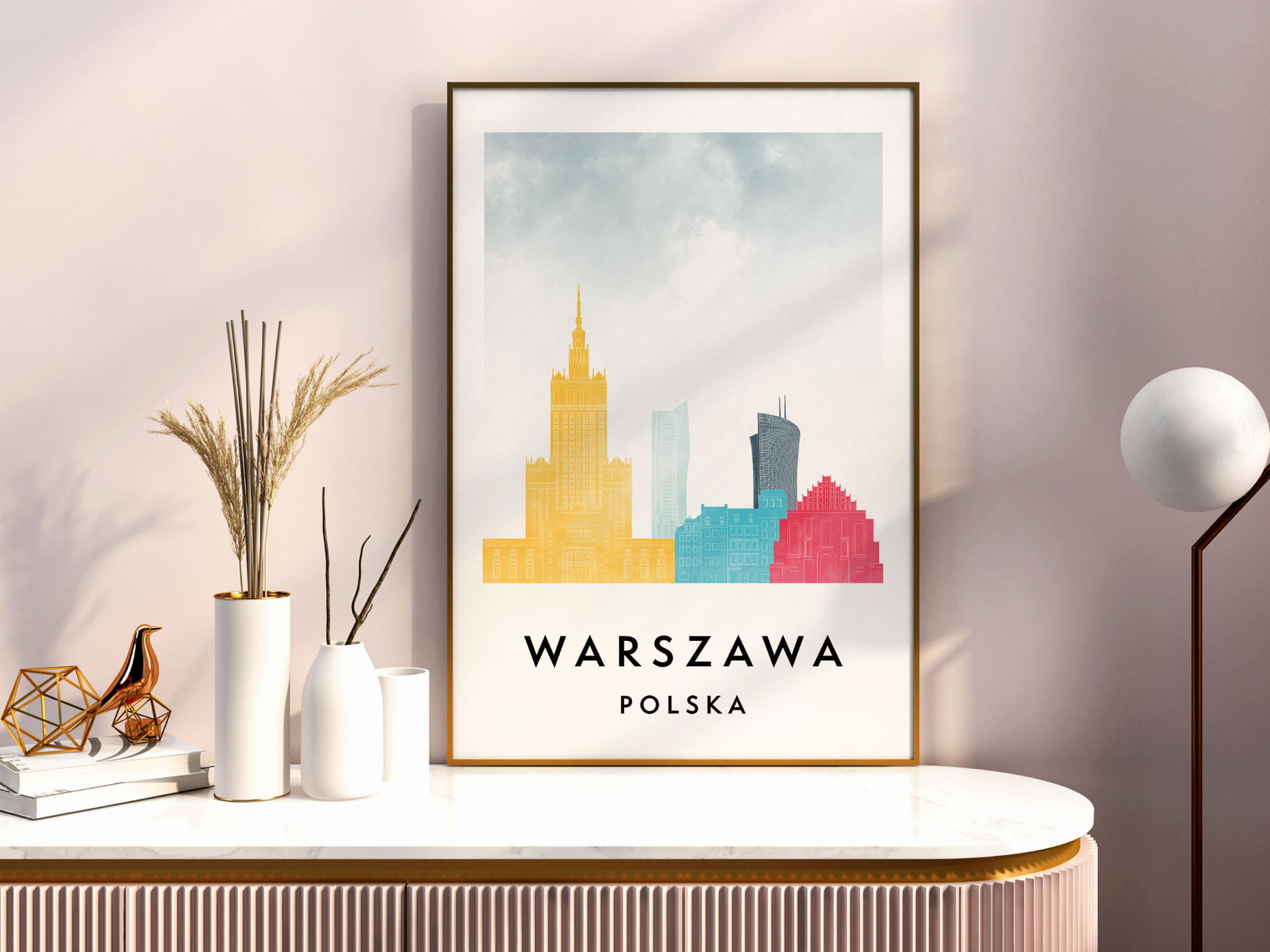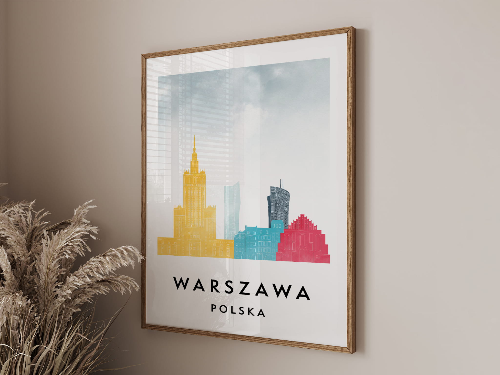 Plakat do salonu skylines Warszawa stylu Watercolor/ Akwarelowym