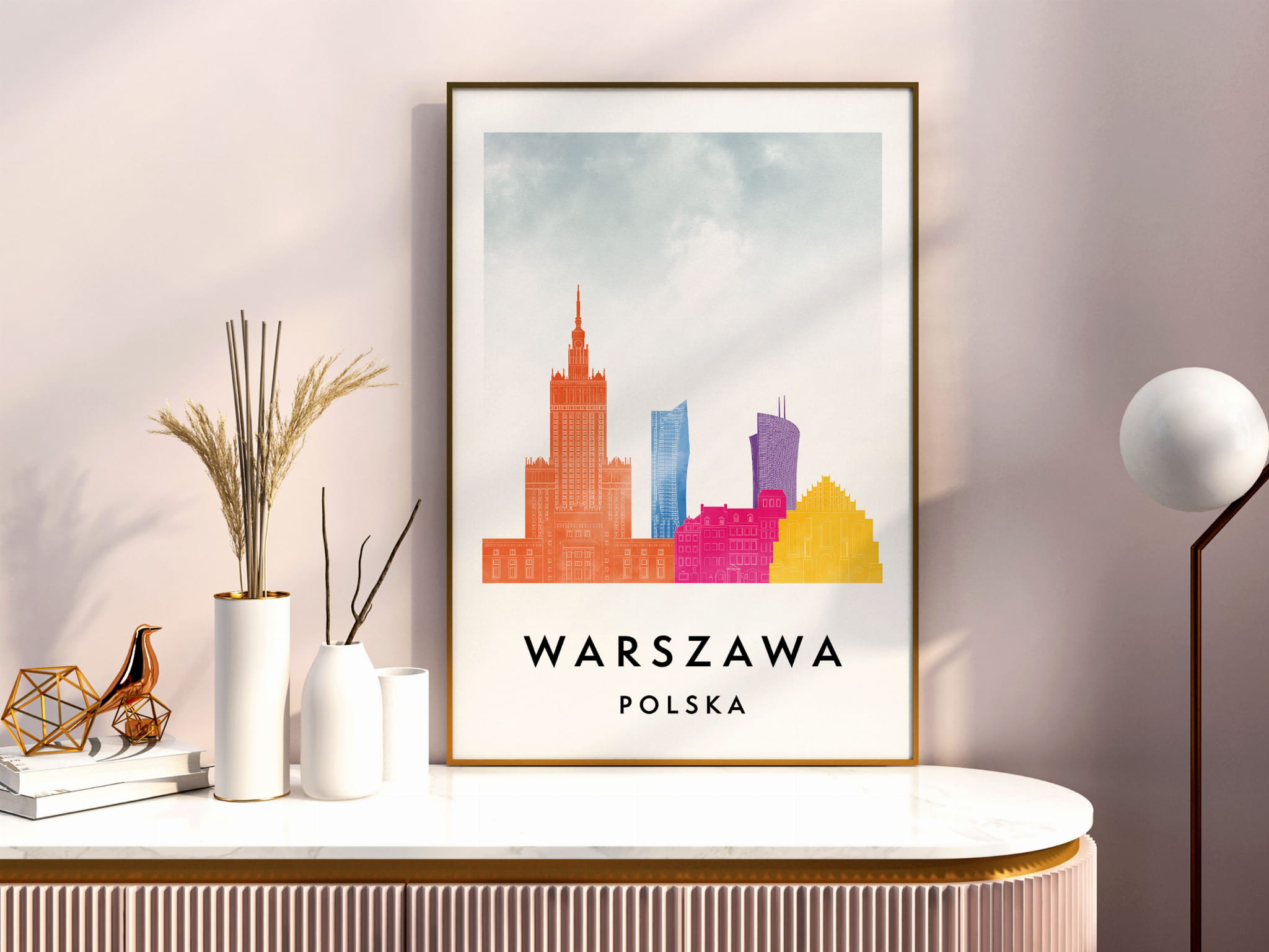 Plakat do salonu skylines Warszawa stylu Watercolor/ Akwarelowym