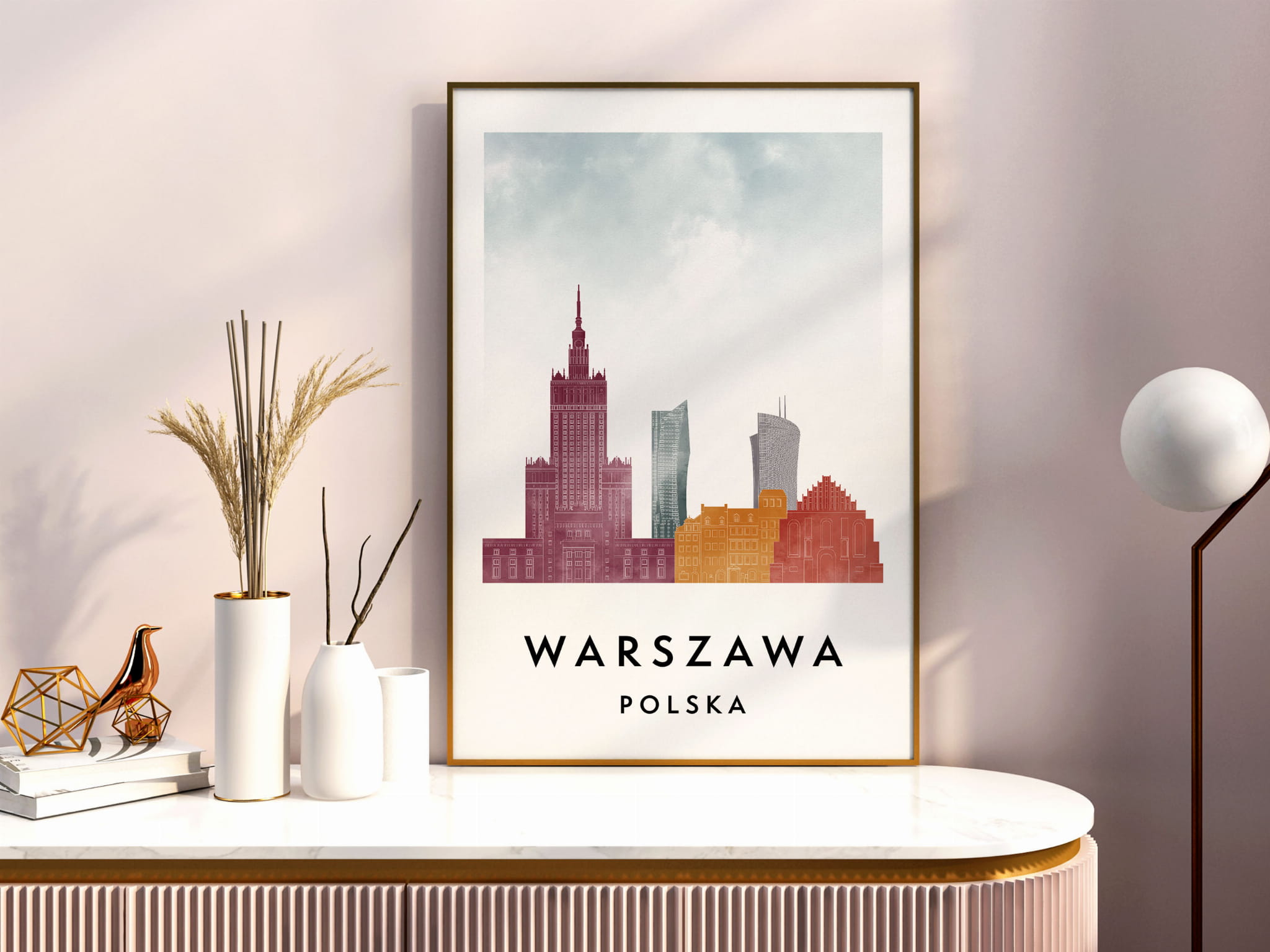 Plakat do salonu skylines Warszawa stylu Watercolor/ Akwarelowym