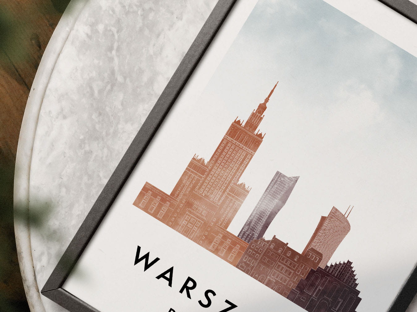 Plakat do salonu skylines Warszawa stylu Watercolor/ Akwarelowym