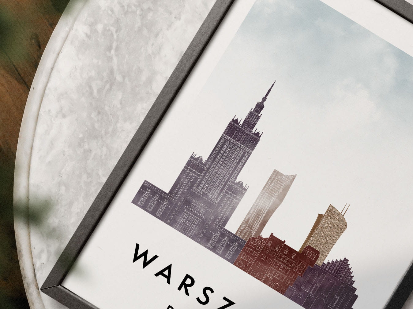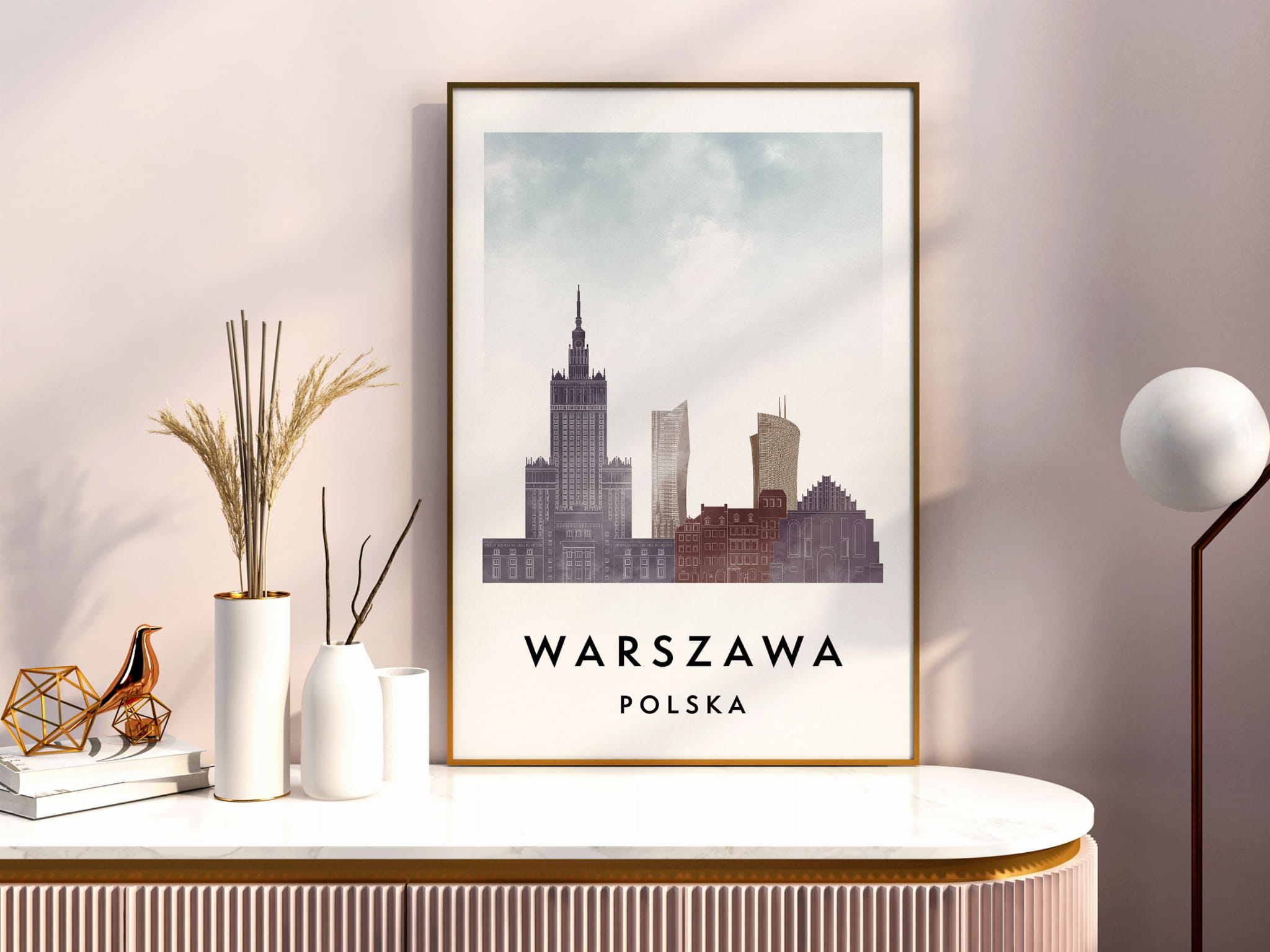 Plakat do salonu skylines Warszawa stylu Watercolor/ Akwarelowym