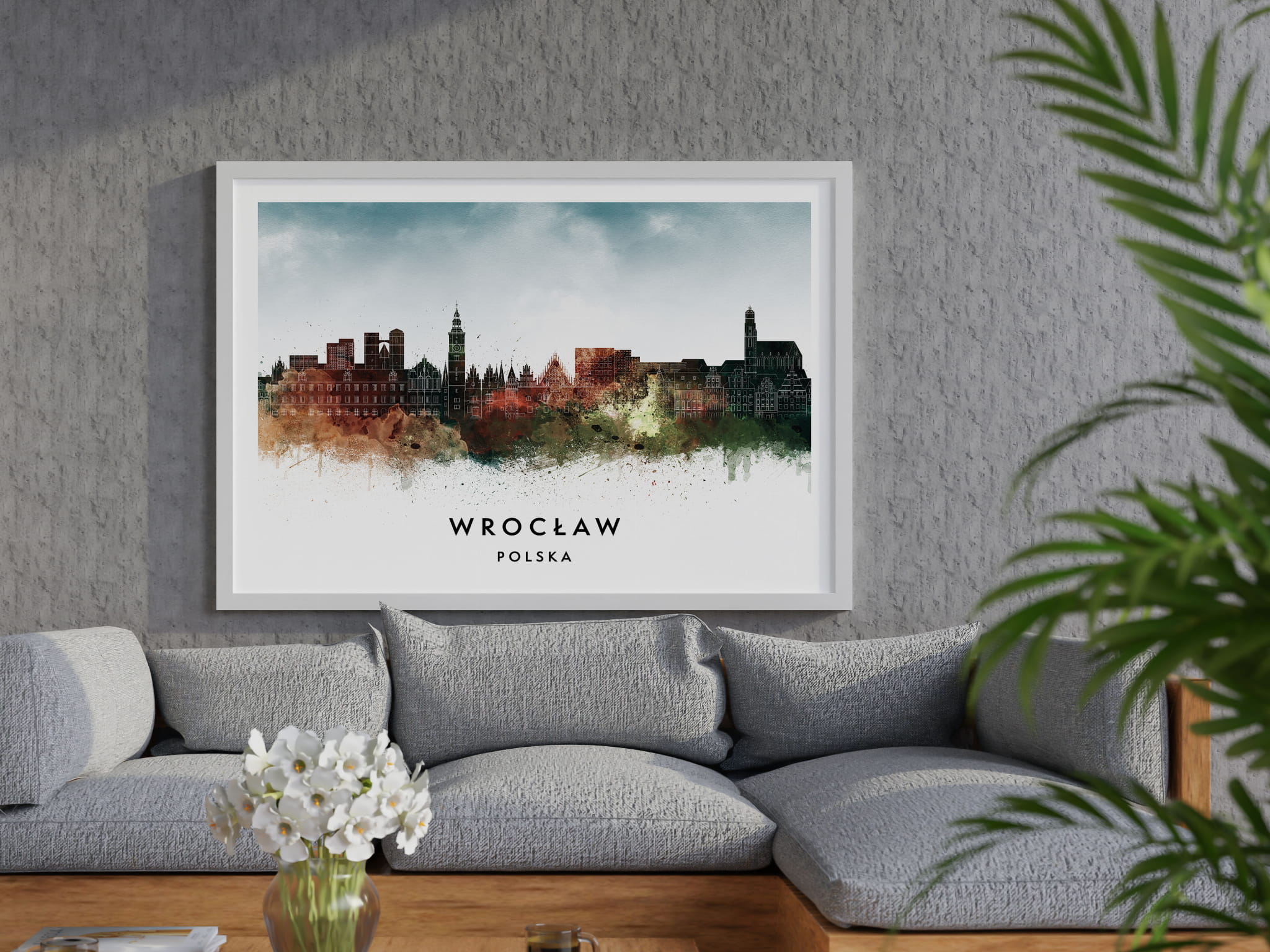 Plakat do salonu skylines Wrocław stylu Watercolor/ Akwarelowym