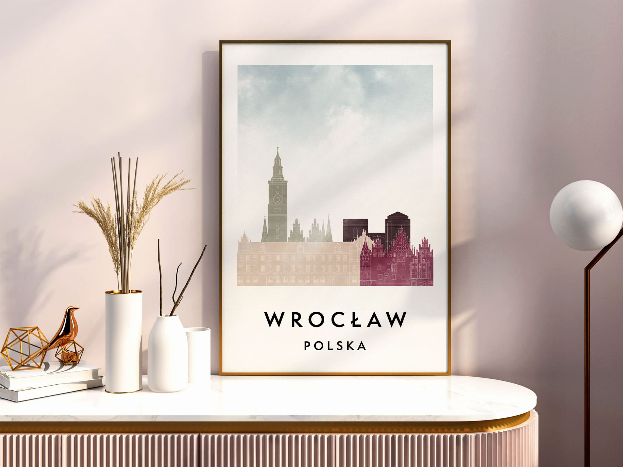 Plakat do salonu skylines Wrocław stylu Watercolor/ Akwarelowym