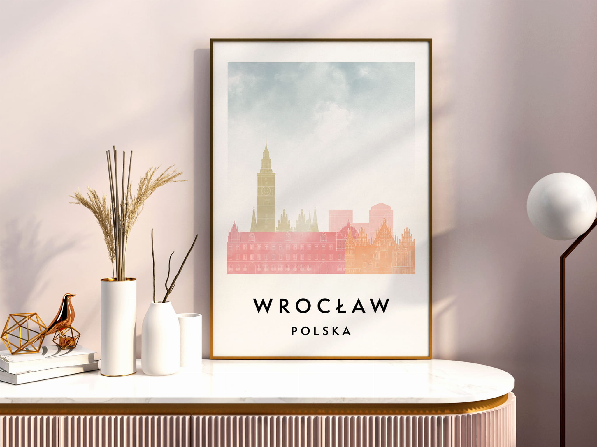 Plakat do salonu skylines Wrocław stylu Watercolor/ Akwarelowym