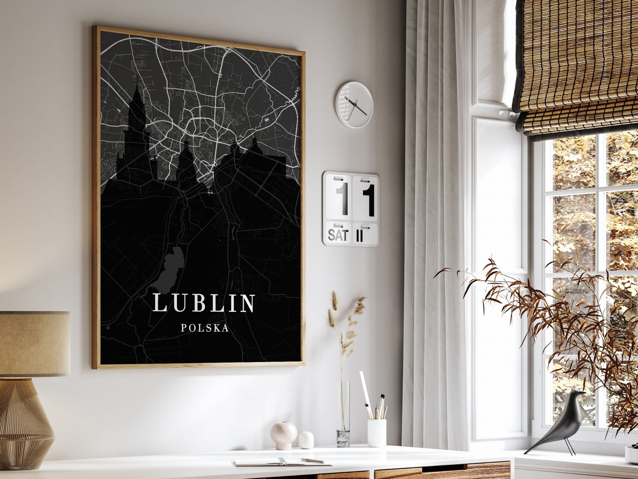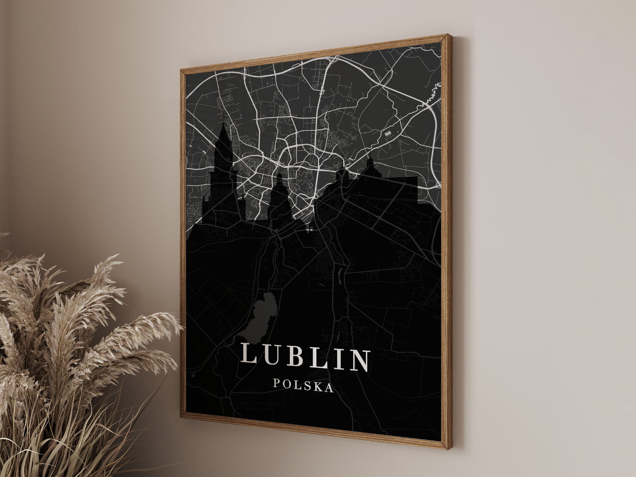 Plakat do salonu skylines z mapą Lublin