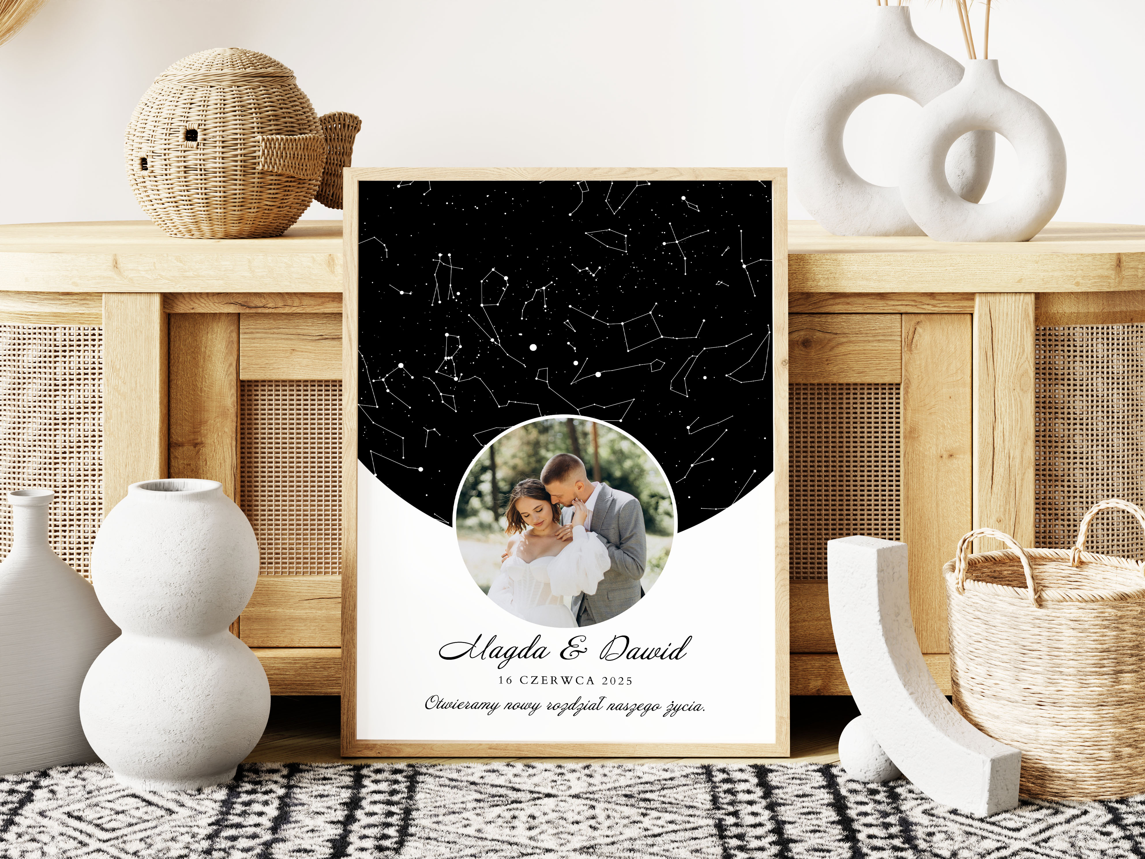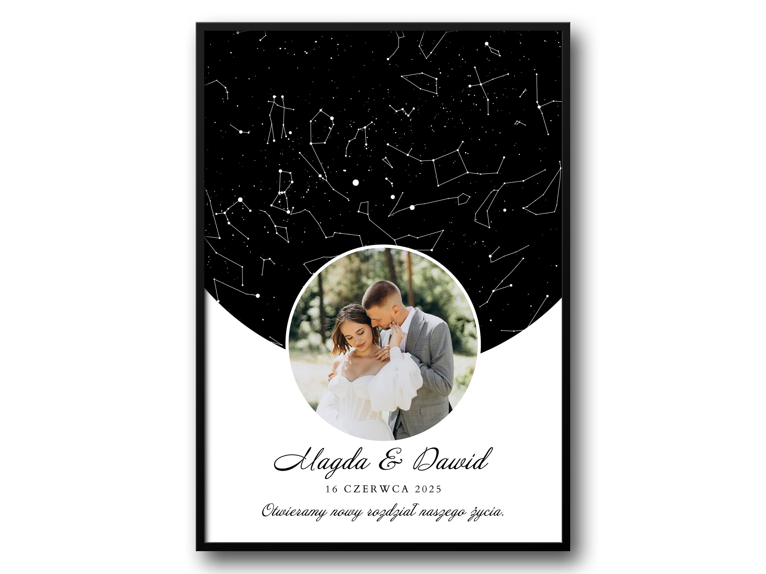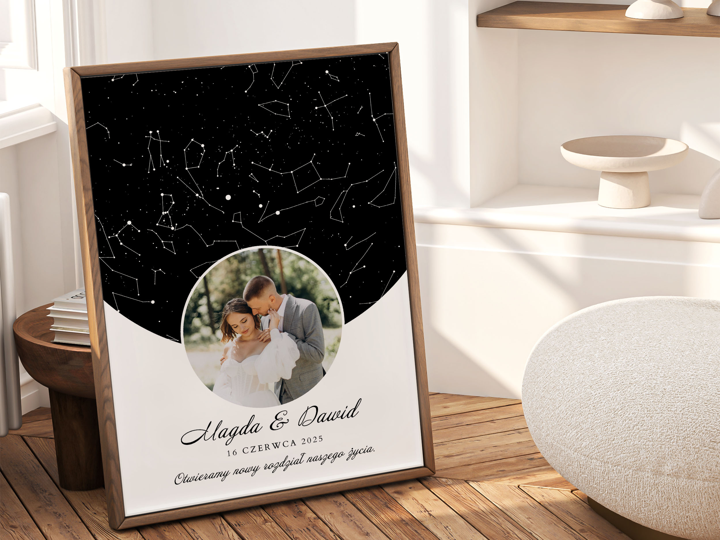 Plakat personalizowany z mapą gwiazd i zdjęciem