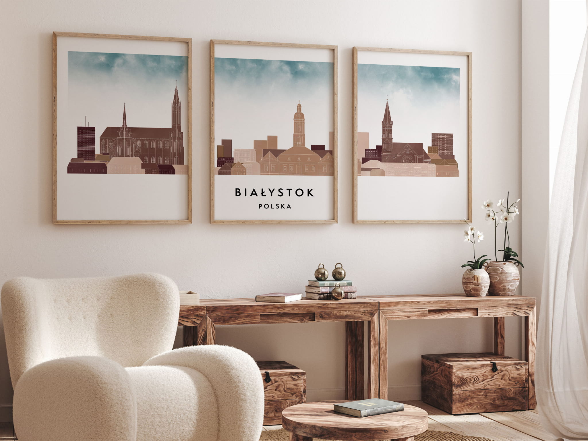 Plakat skylines TRYPTYK Białystok w stylu Watercolor/ Akwarelowym
