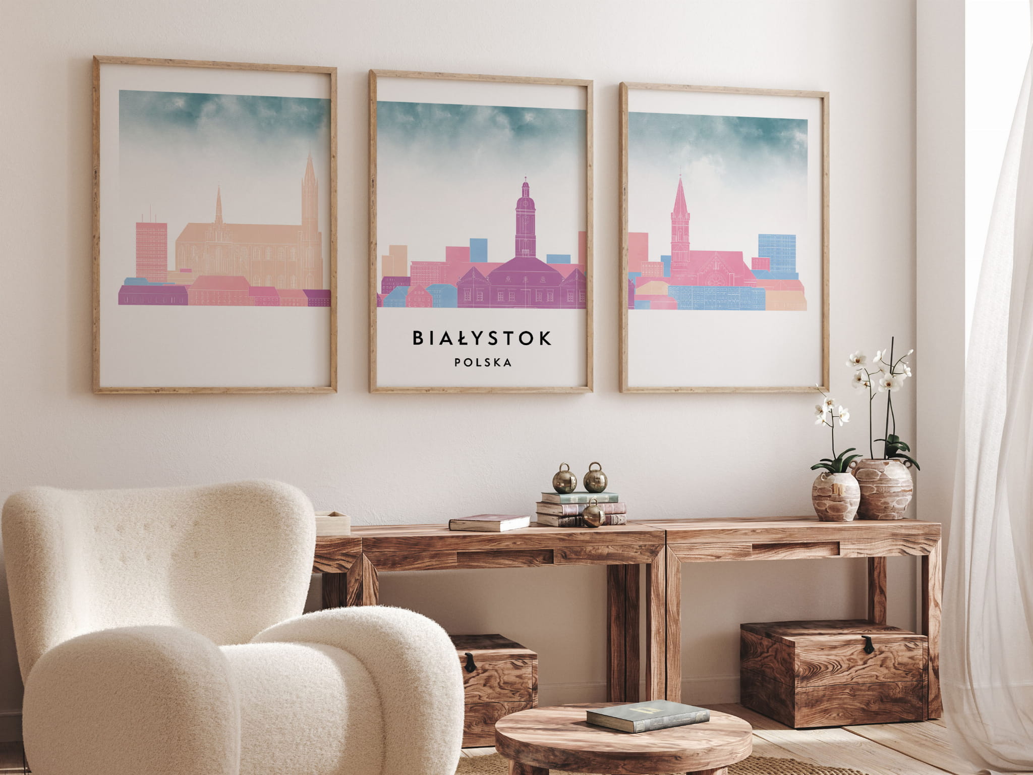 Plakat skylines TRYPTYK Białystok w stylu Watercolor/ Akwarelowym