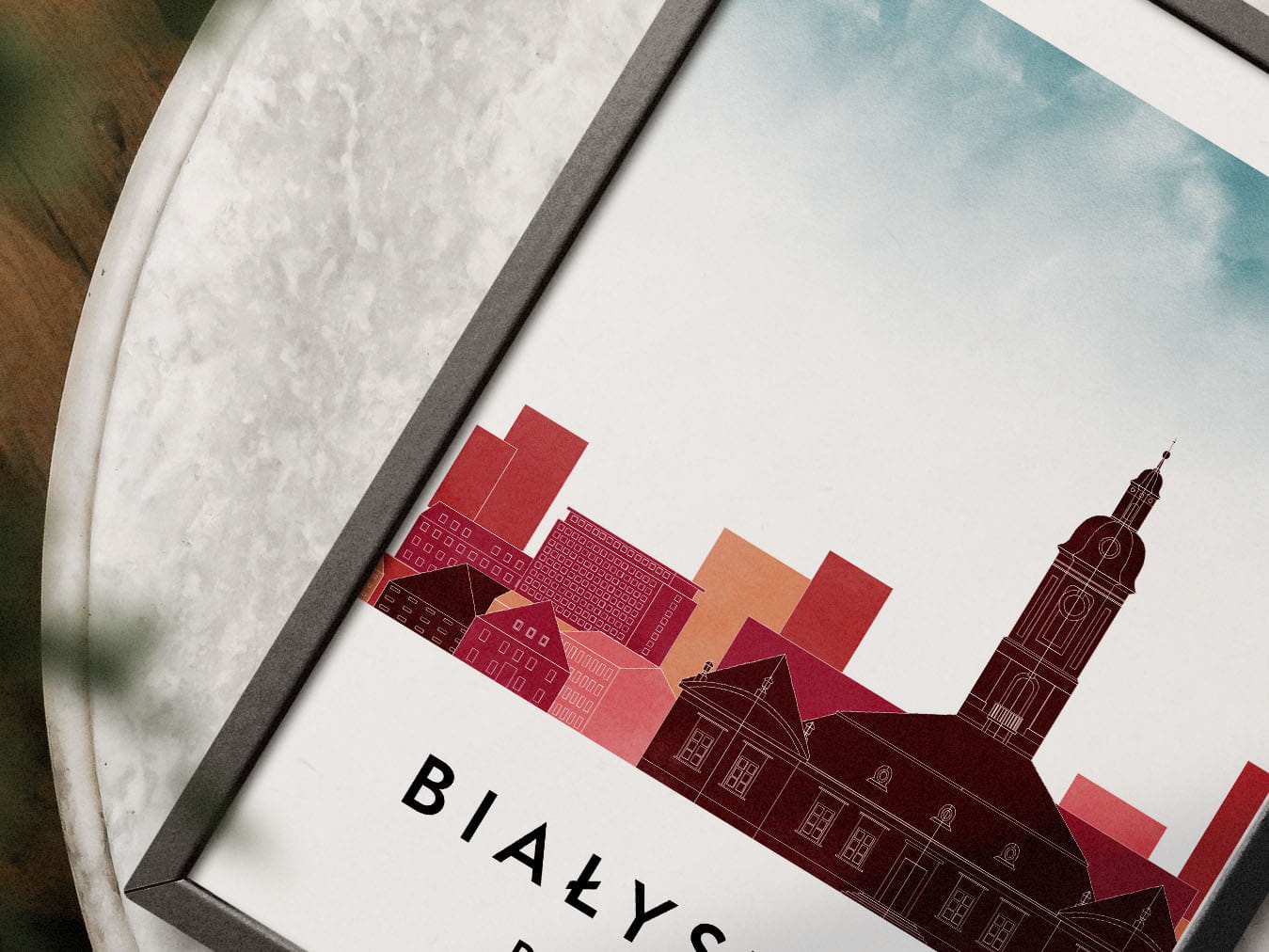 Plakat skylines TRYPTYK Białystok w stylu Watercolor/ Akwarelowym