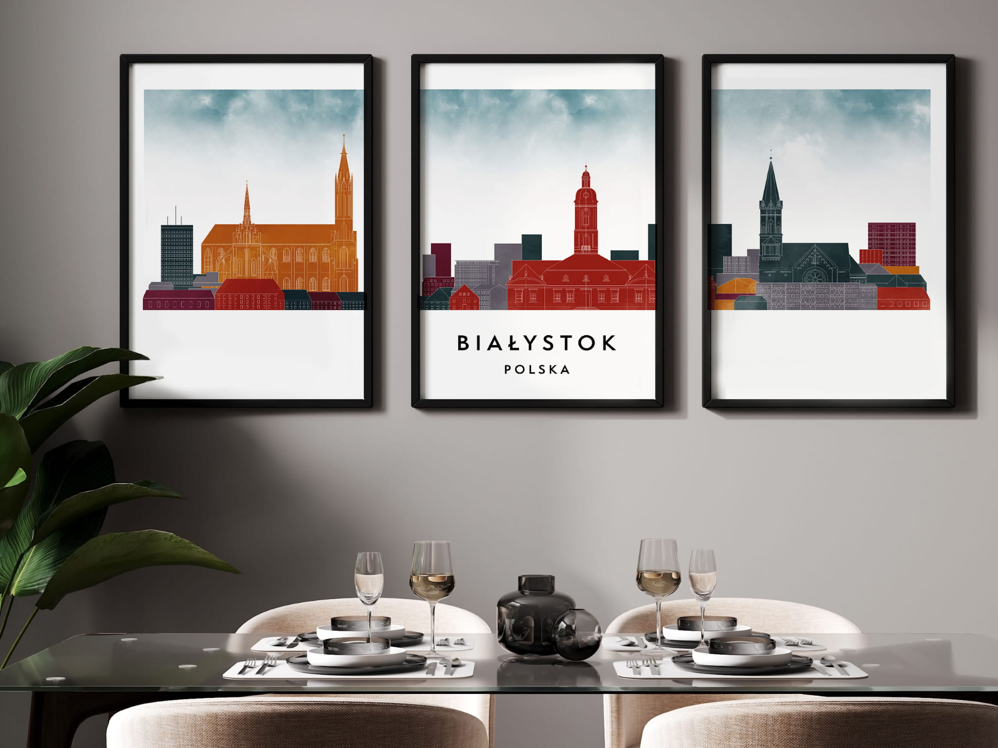 Plakat skylines TRYPTYK Białystok w stylu Watercolor/ Akwarelowym