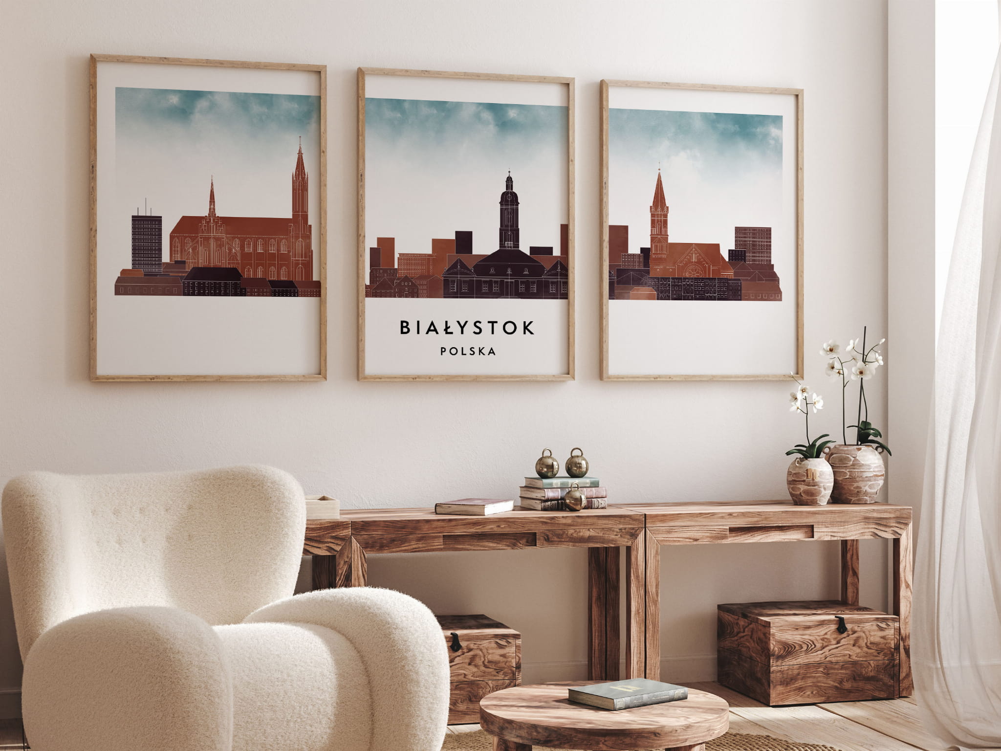 Plakat skylines TRYPTYK Białystok w stylu Watercolor/ Akwarelowym
