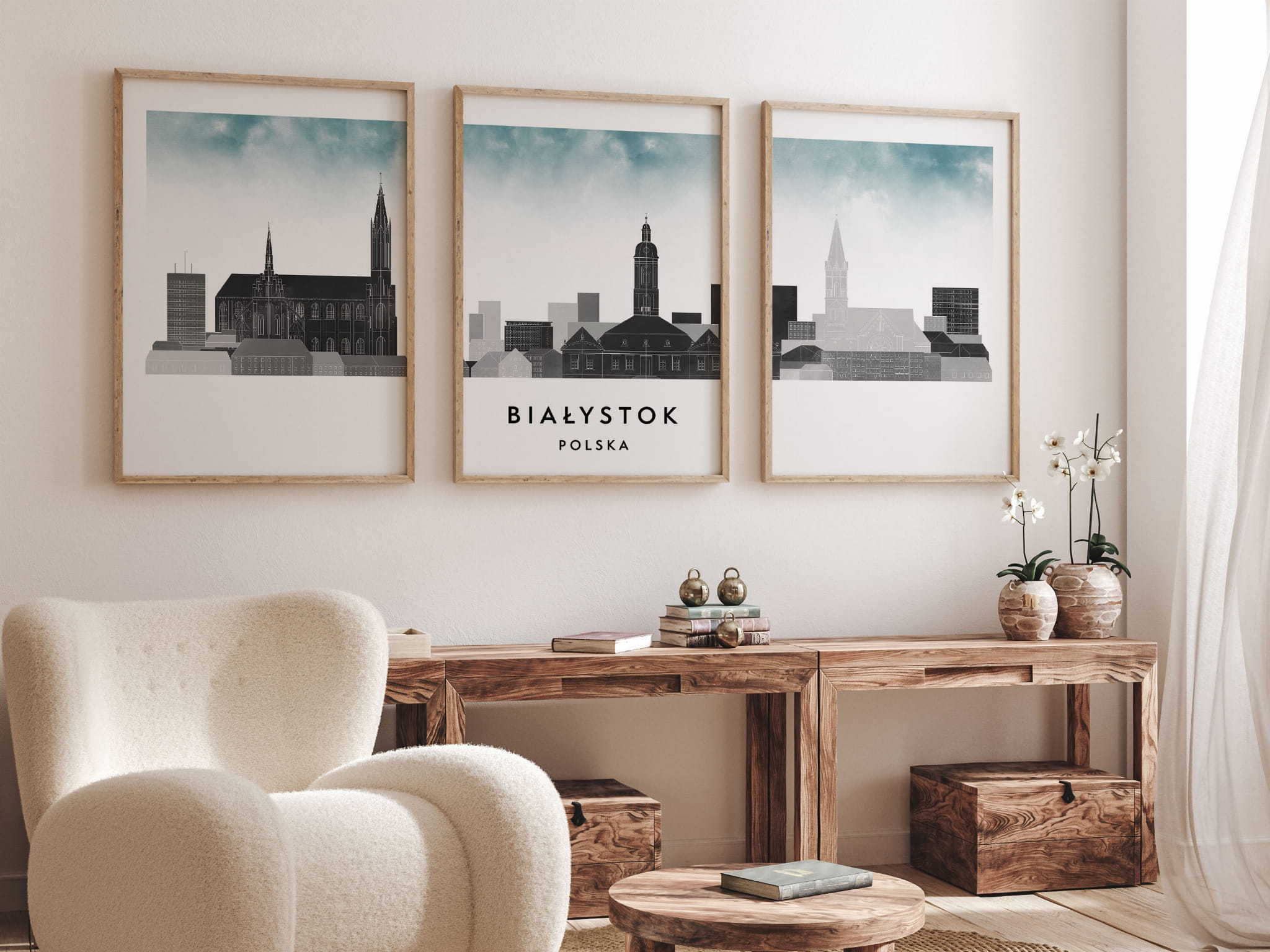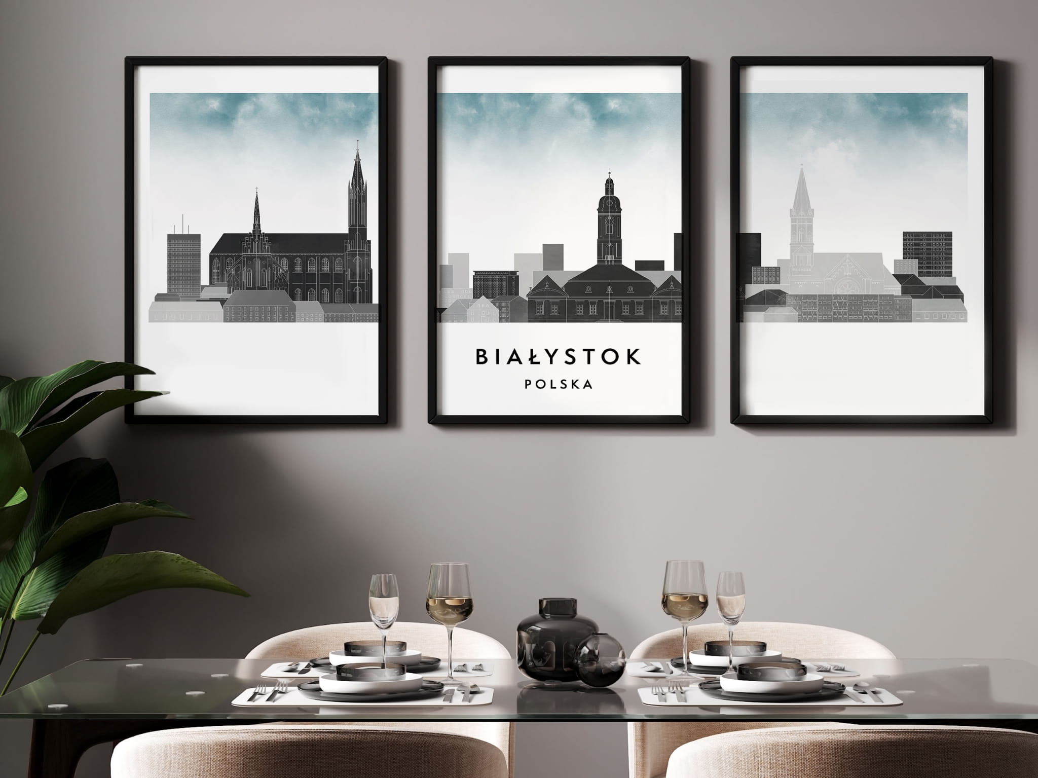 Plakat skylines TRYPTYK Białystok w stylu Watercolor/ Akwarelowym