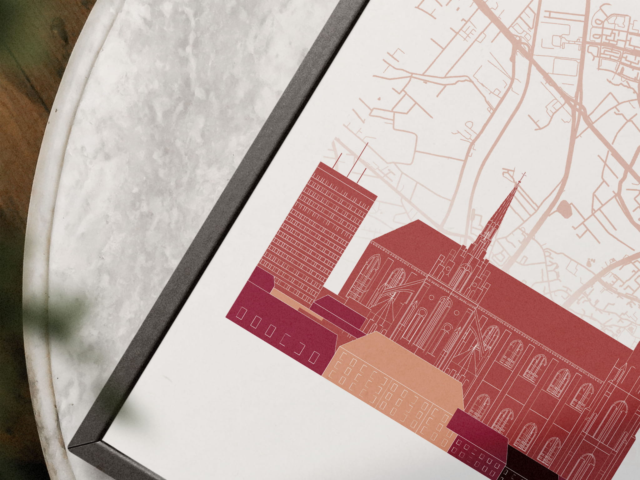 Plakat skylines TRYPTYK Białystok z mapą