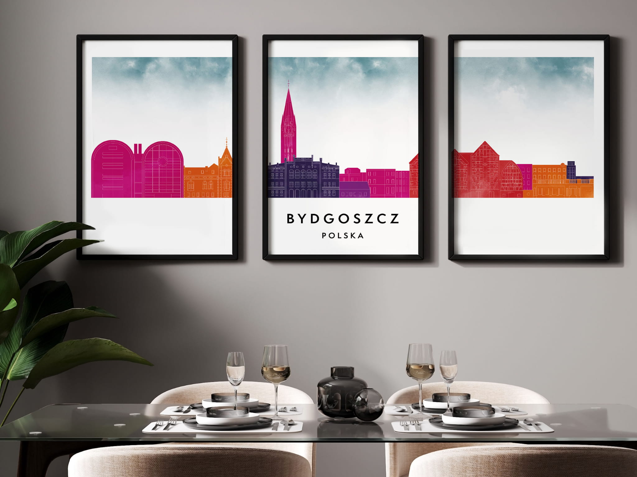 Plakat skylines TRYPTYK Bydgoszcz w stylu Watercolor/ Akwarelowym