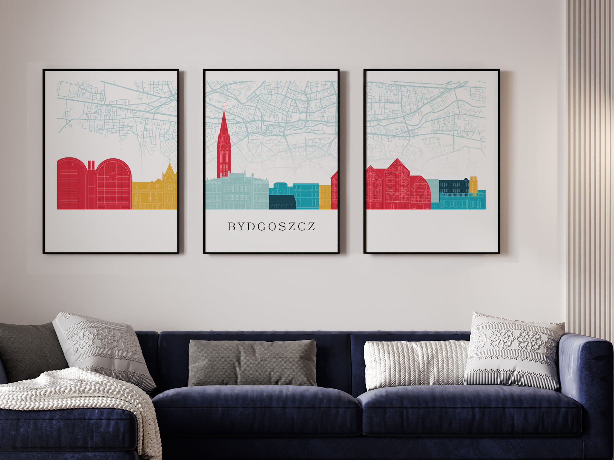 Plakat skylines TRYPTYK Bydgoszcz z mapą