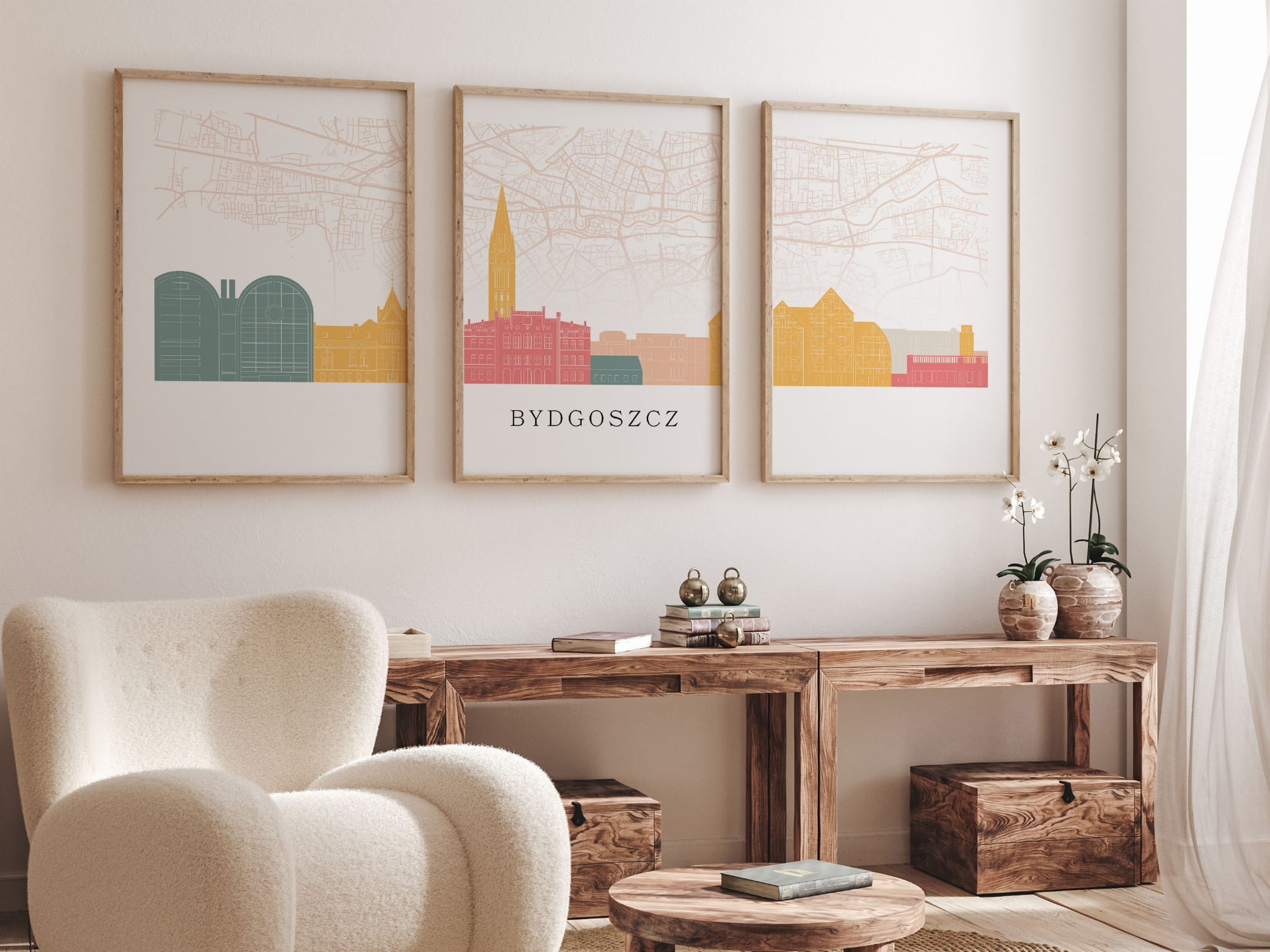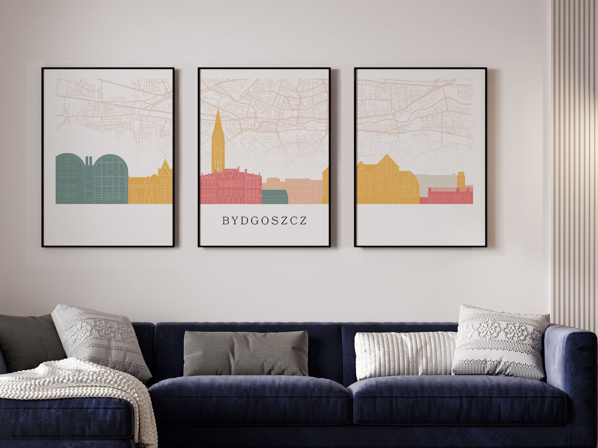 Plakat skylines TRYPTYK Bydgoszcz z mapą