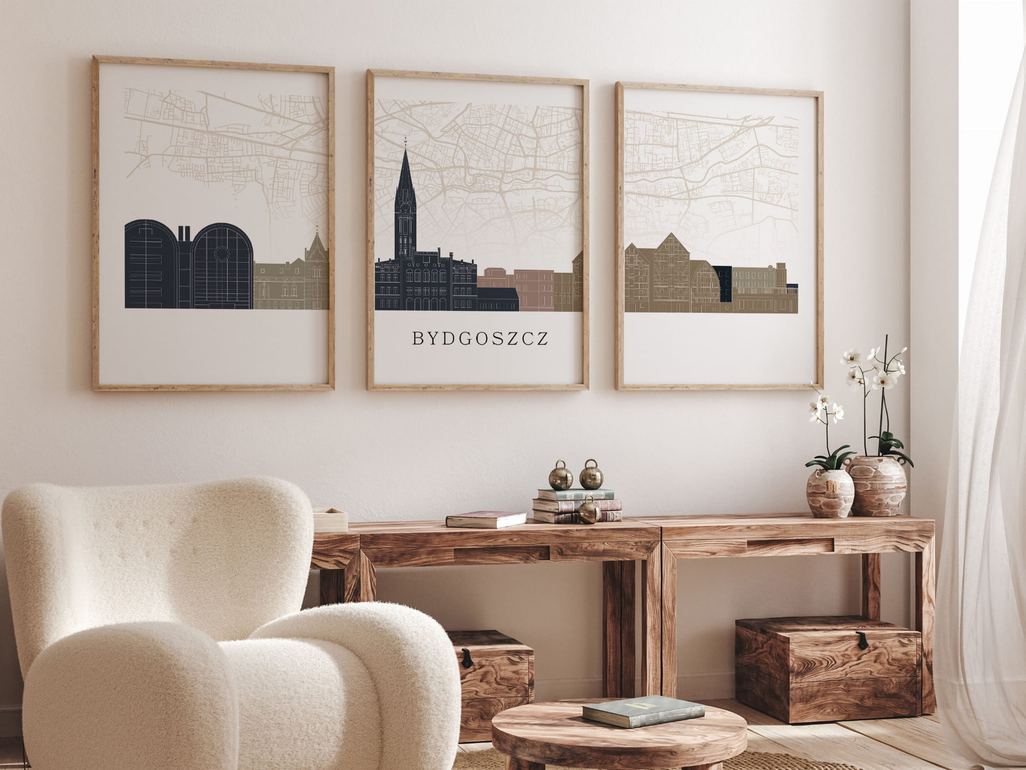 Plakat skylines TRYPTYK Bydgoszcz z mapą