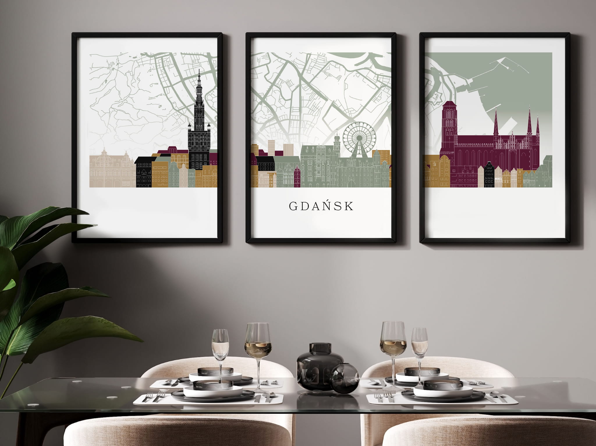 Plakat skylines TRYPTYK Gdańsk z mapą