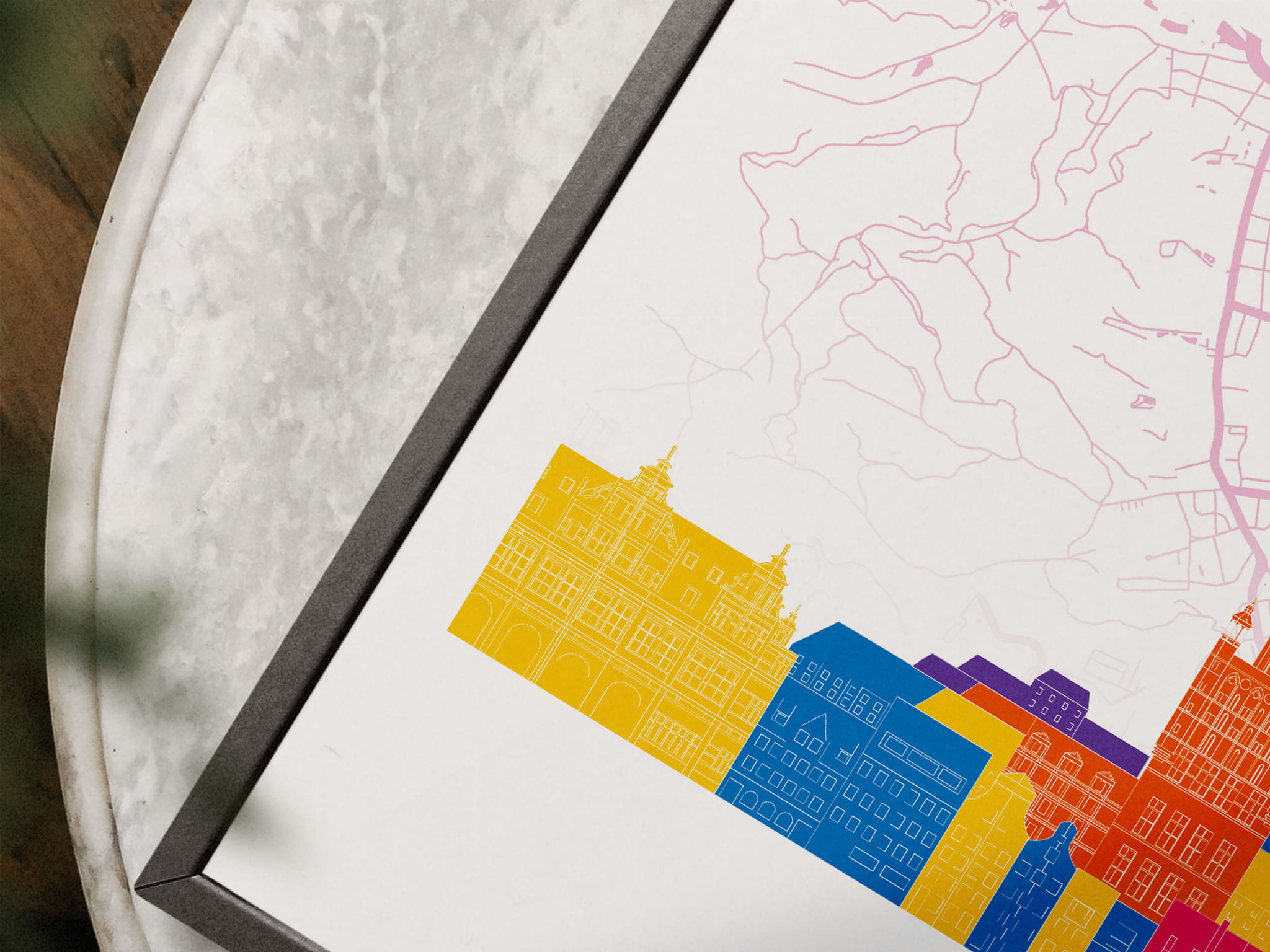 Projektując plakaty z tej serii, postawiliśmy na kolory i charakterystyczne symbole miast.  Taki zestaw podróżniczych plakatów będzie doskonałym uzupełnieniem pomieszczenia.