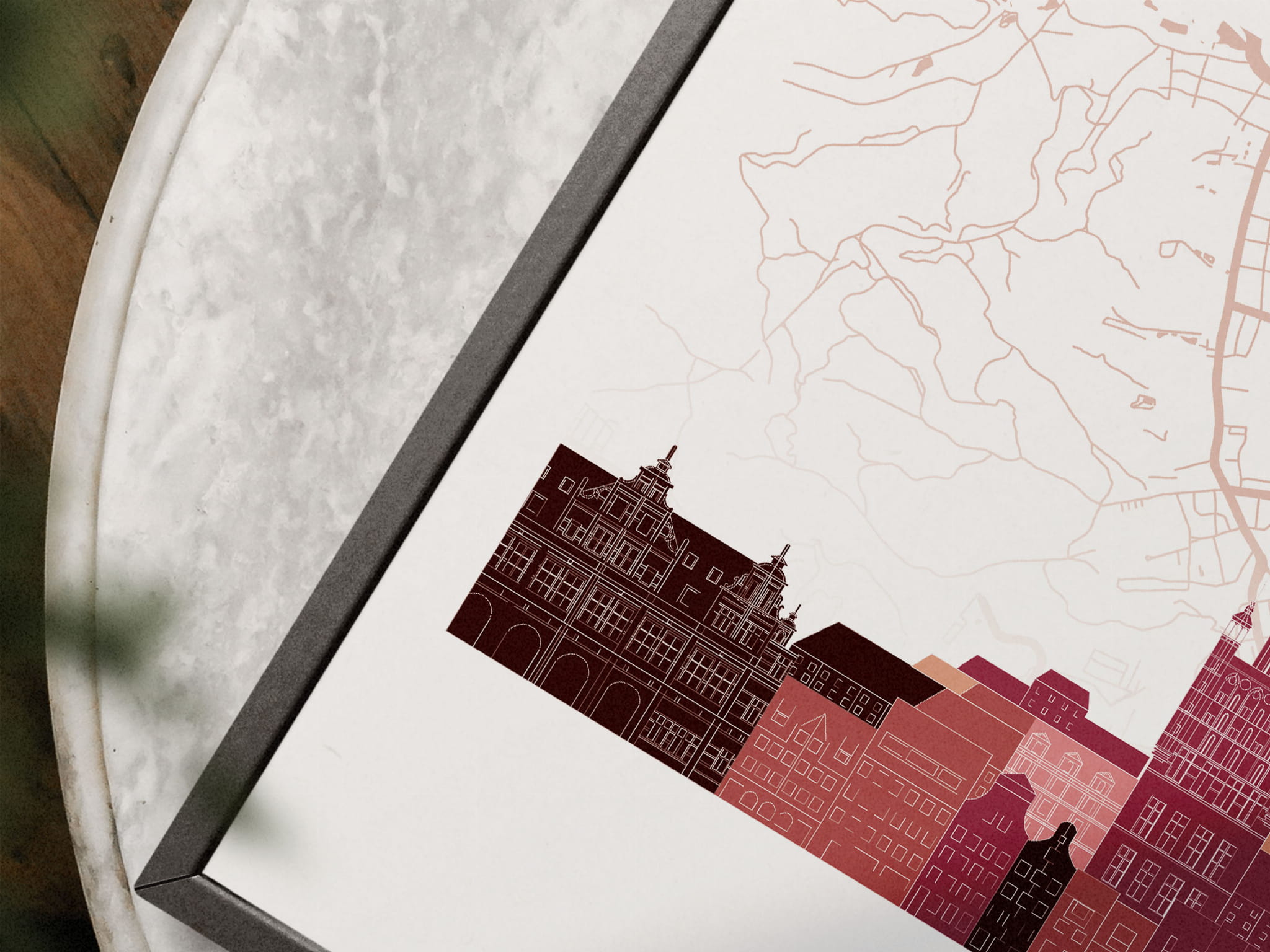 Plakat skylines TRYPTYK Gdańsk z mapą