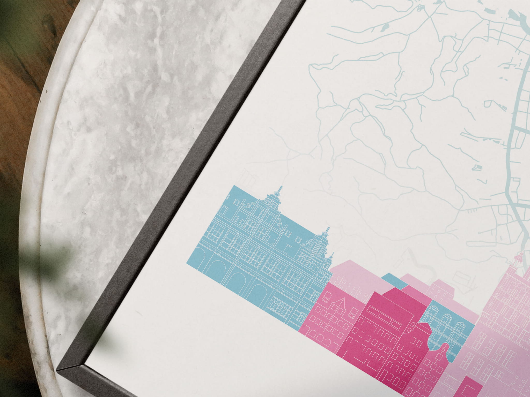 Projektując plakaty z tej serii, postawiliśmy na kolory i charakterystyczne symbole miast.  Taki zestaw podróżniczych plakatów będzie doskonałym uzupełnieniem pomieszczenia.