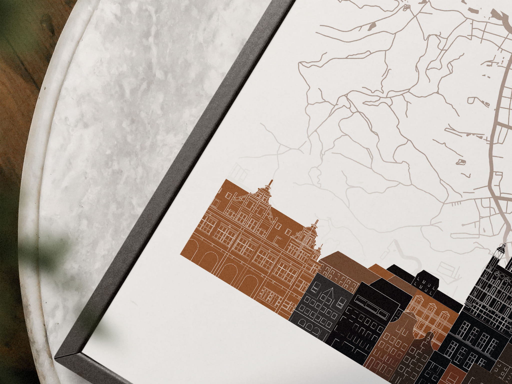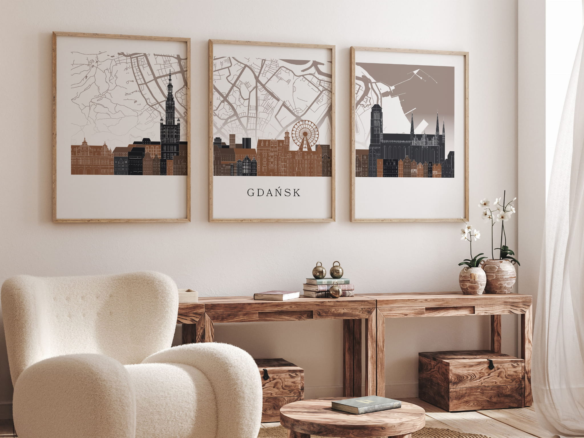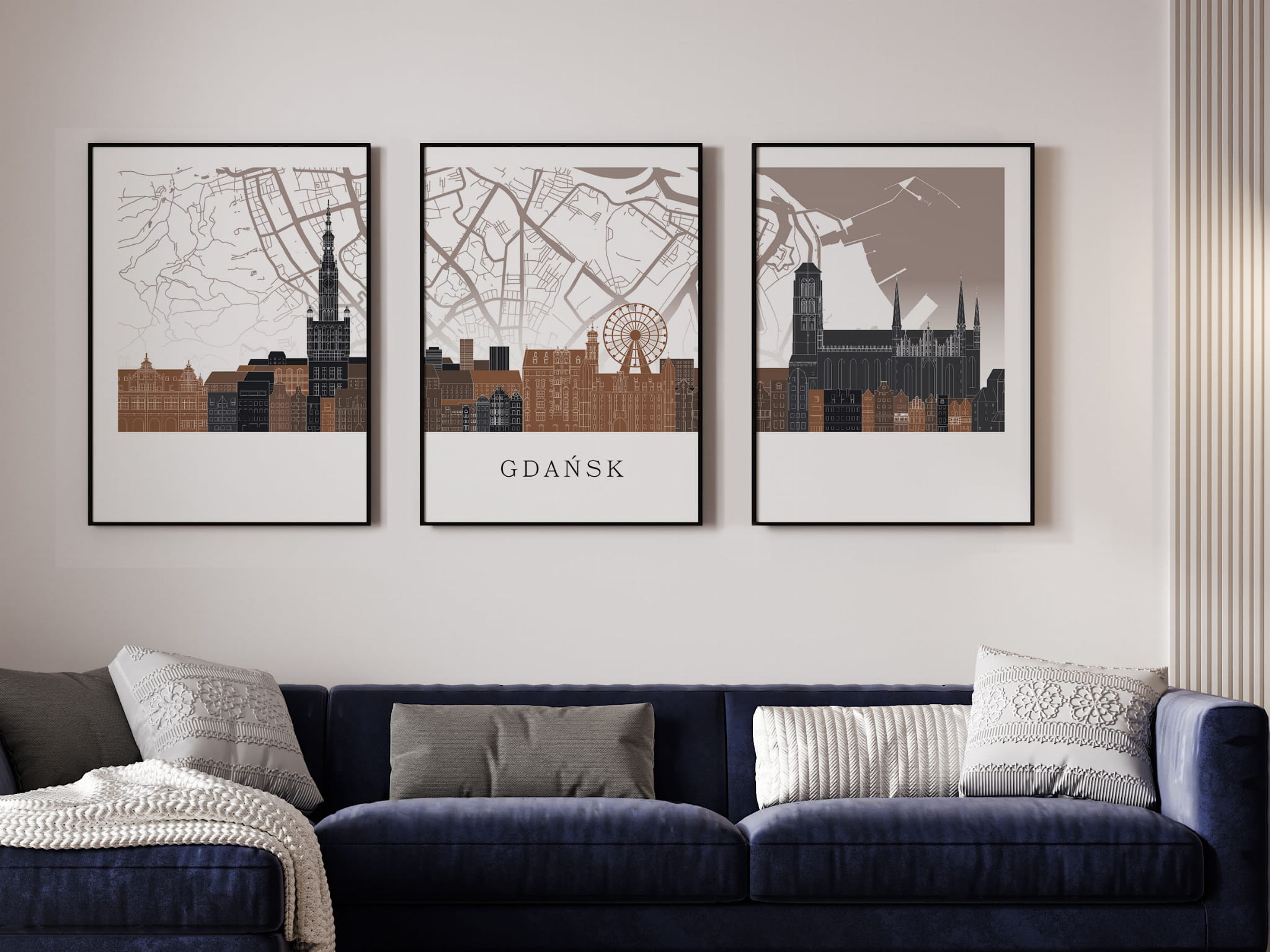 Plakat skylines TRYPTYK Gdańsk z mapą