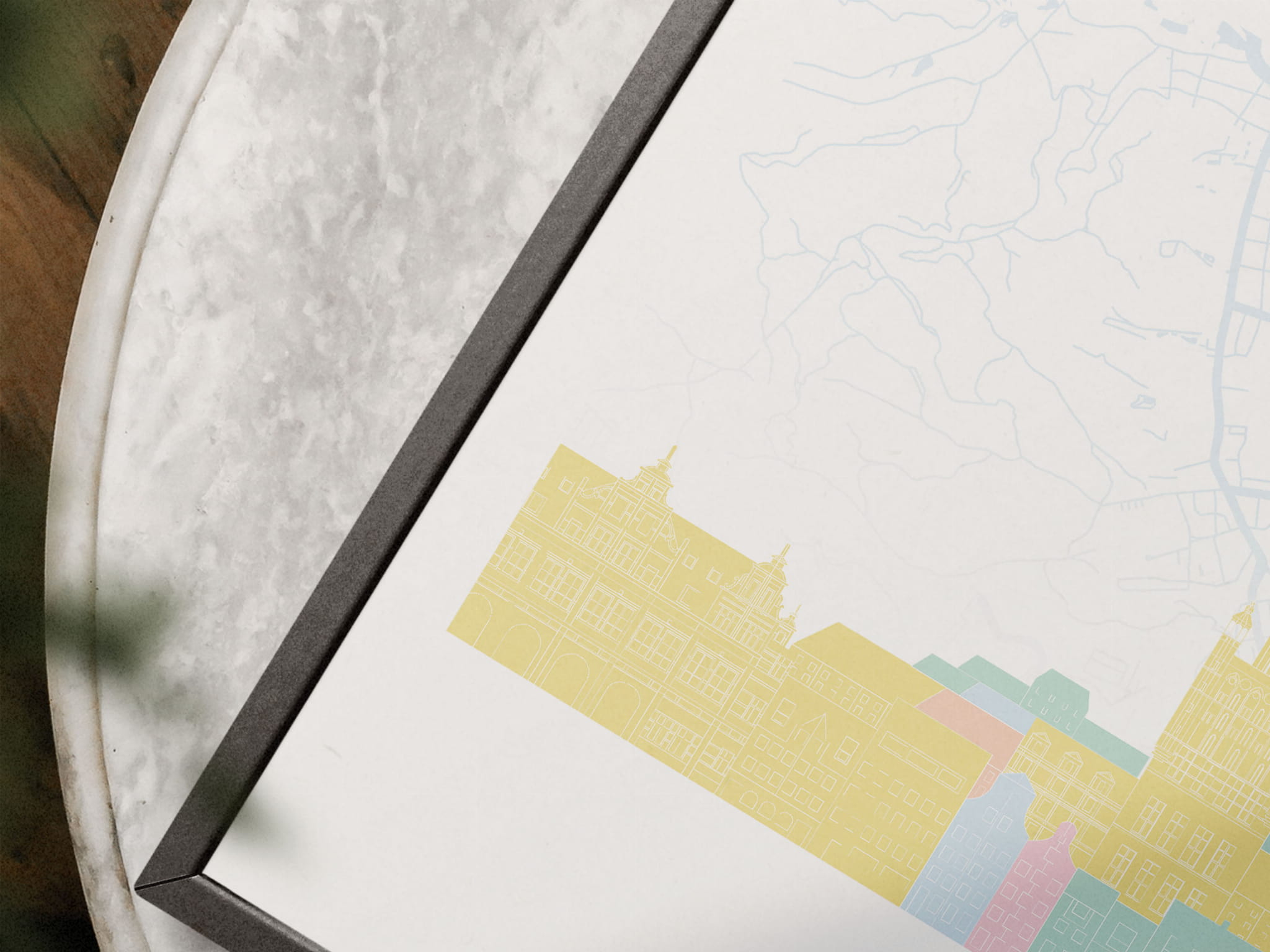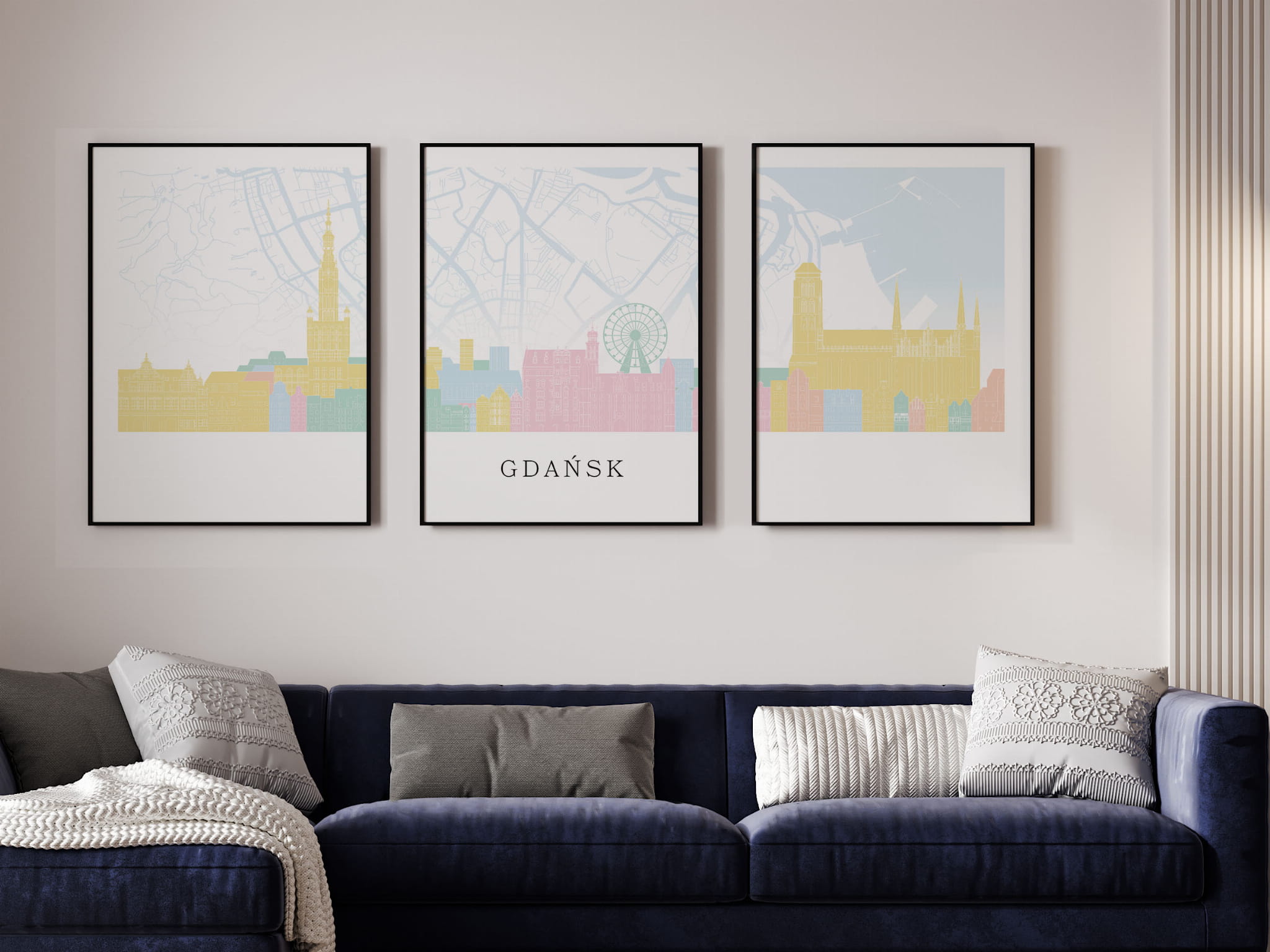 Plakat skylines TRYPTYK Gdańsk z mapą