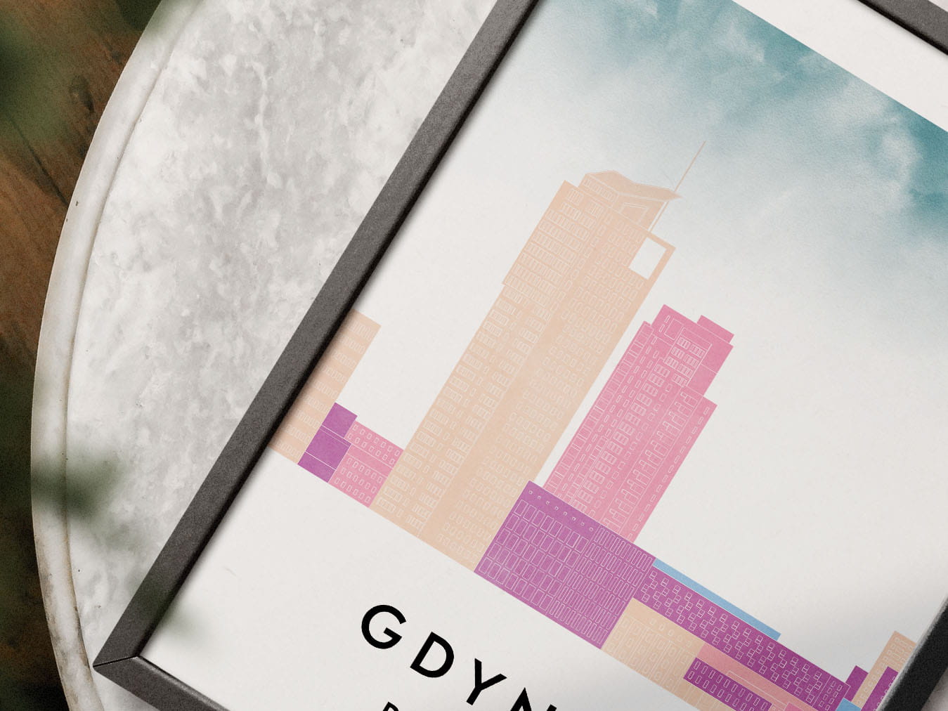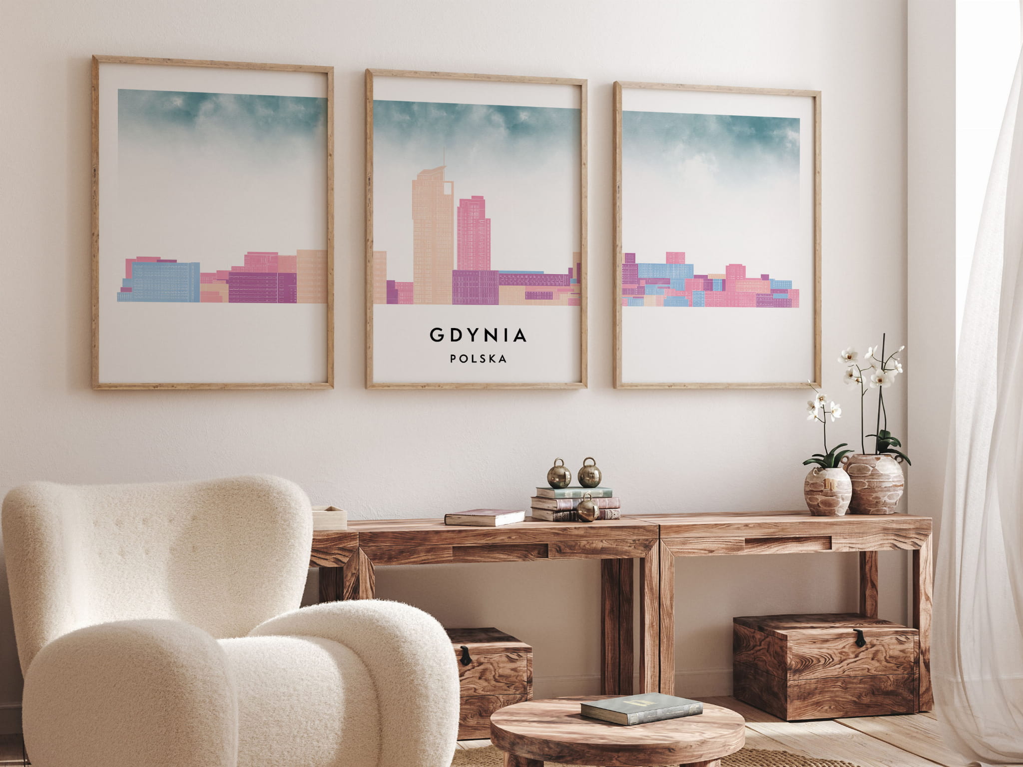Plakat skylines TRYPTYK Gdynia w stylu Watercolor/ Akwarelowym