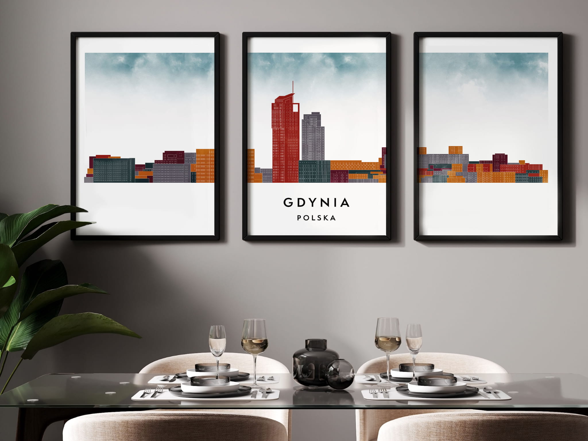 Plakat skylines TRYPTYK Gdynia w stylu Watercolor/ Akwarelowym