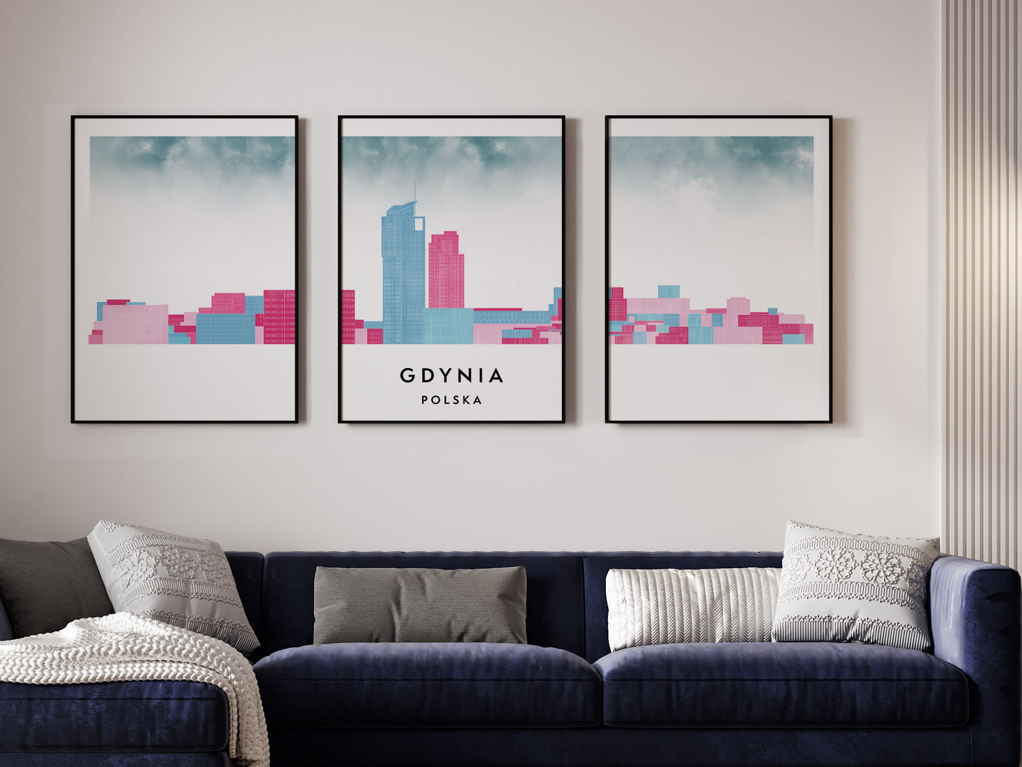 Plakat skylines TRYPTYK Gdynia w stylu Watercolor/ Akwarelowym