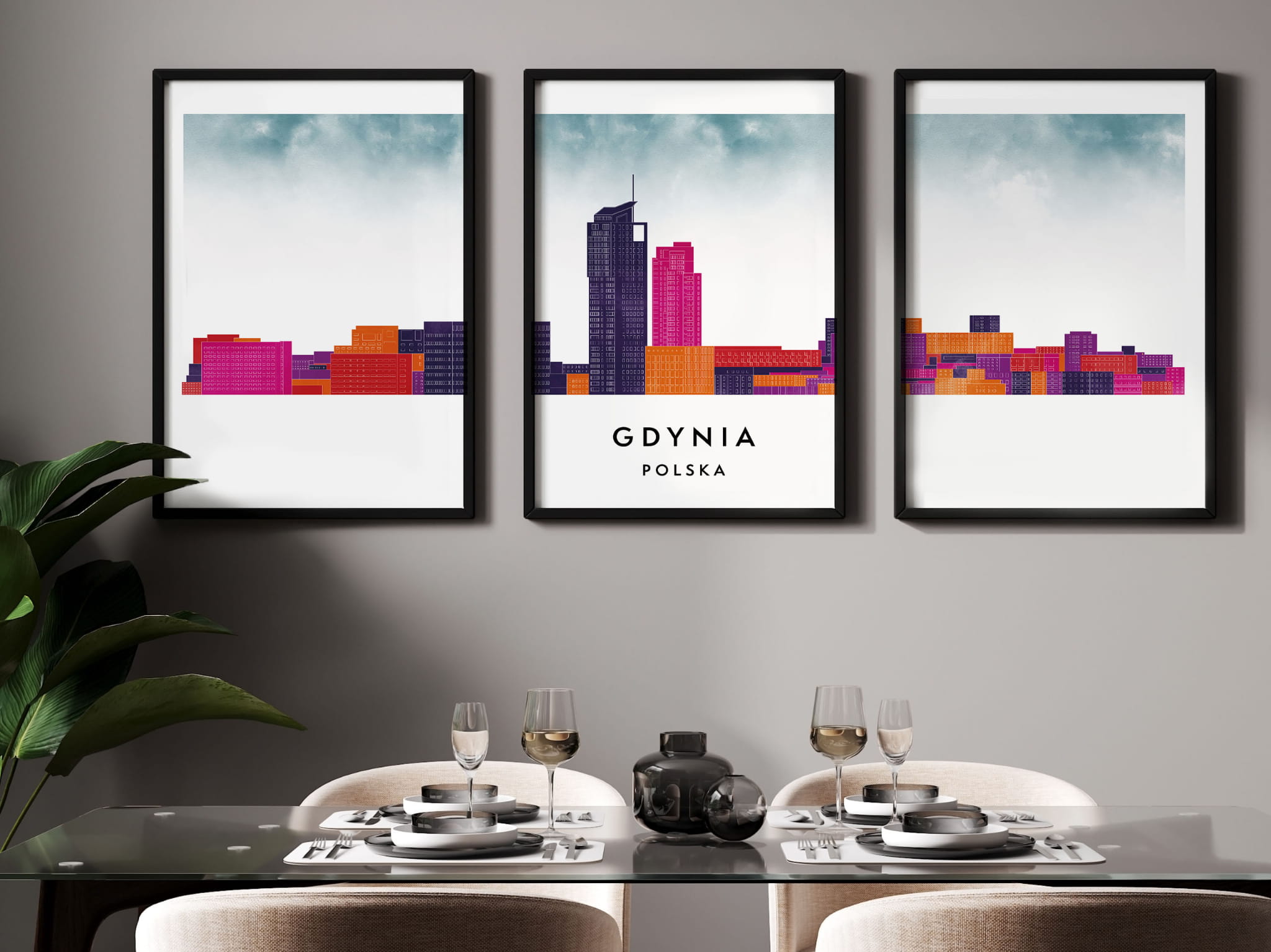 Plakat skylines TRYPTYK Gdynia w stylu Watercolor/ Akwarelowym
