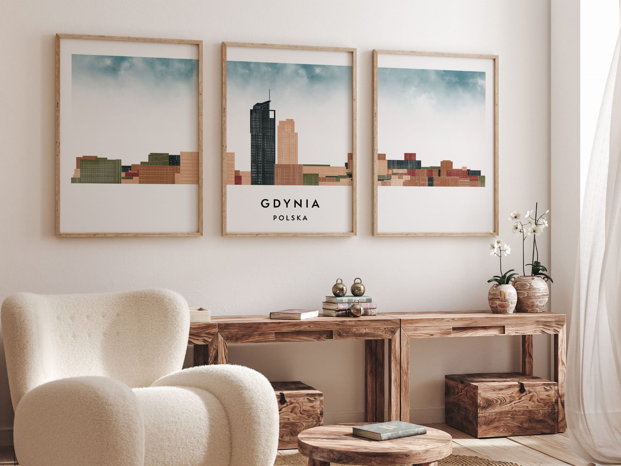 Plakat skylines TRYPTYK Gdynia w stylu Watercolor/ Akwarelowym