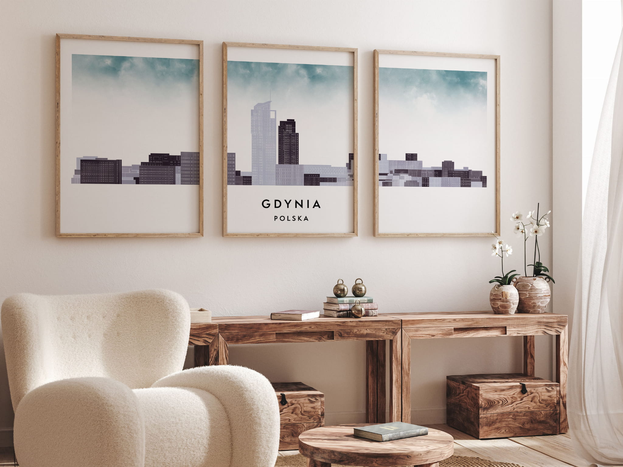 Plakat skylines TRYPTYK Gdynia w stylu Watercolor/ Akwarelowym