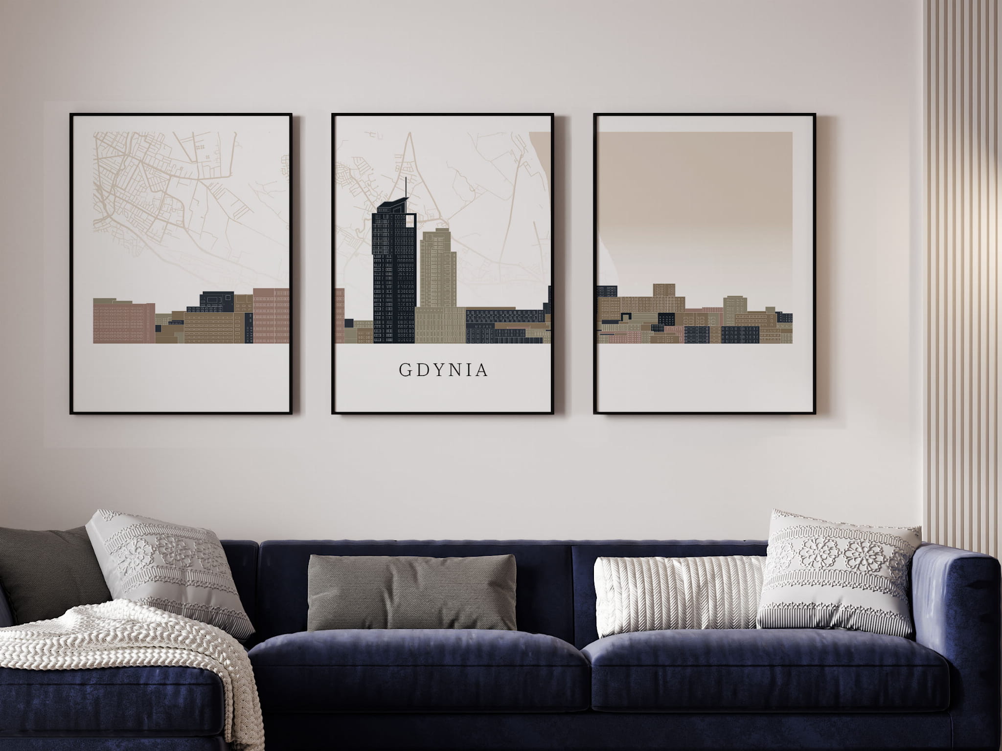 Plakat skylines TRYPTYK Gdynia z mapą
