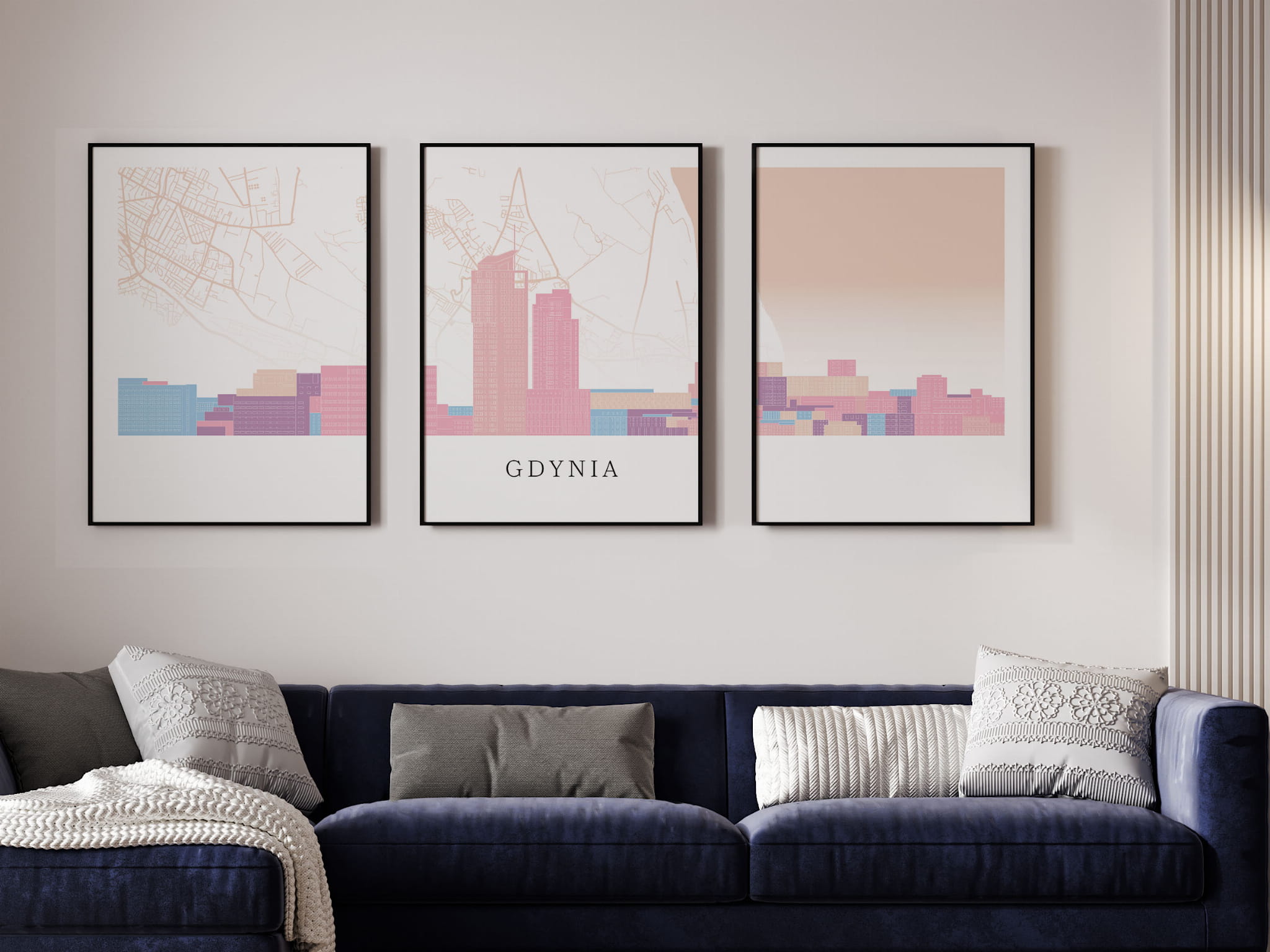Plakat skylines TRYPTYK Gdynia z mapą