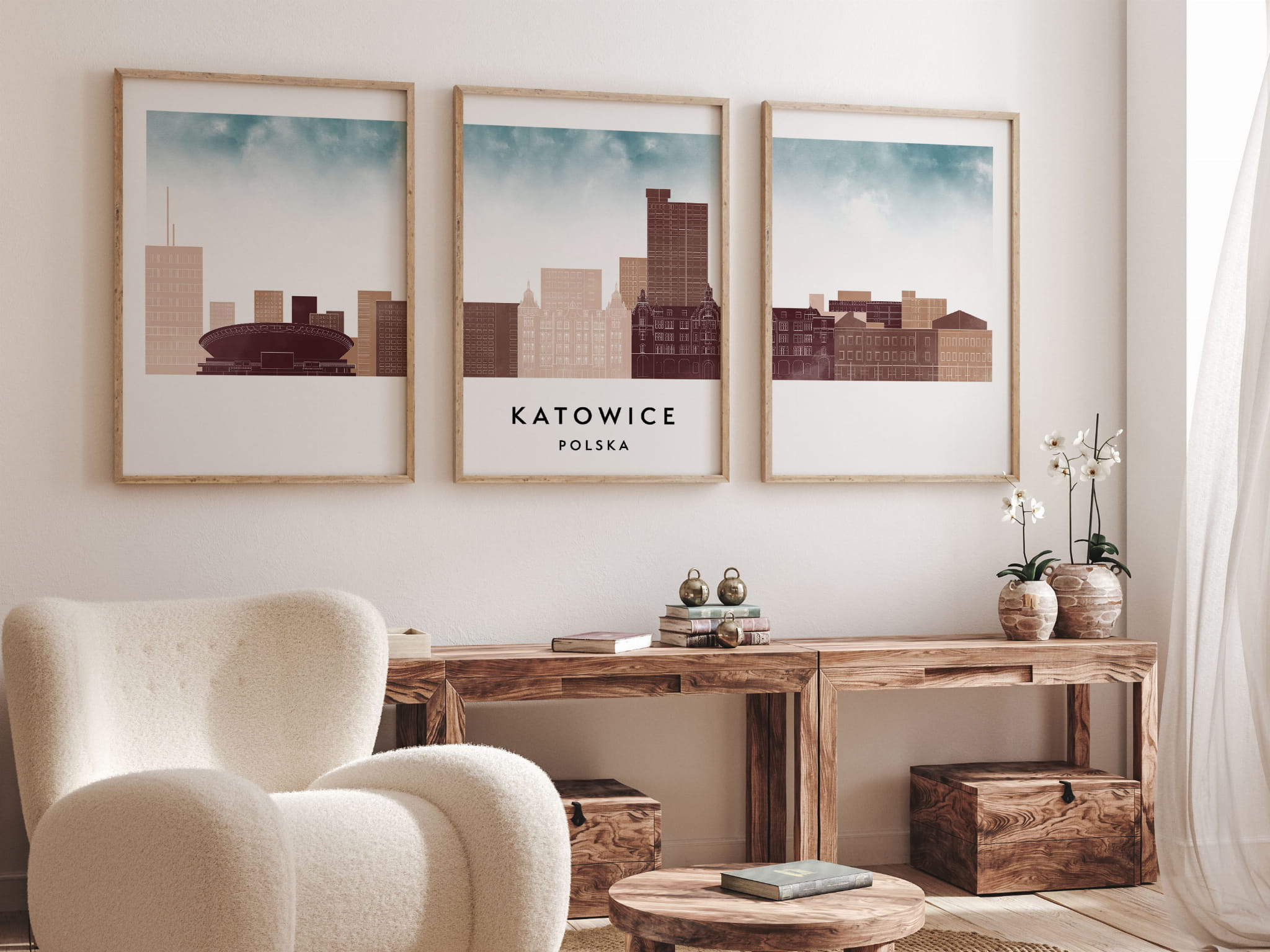 Plakat skylines TRYPTYK Katowice w stylu Watercolor/ Akwarelowym