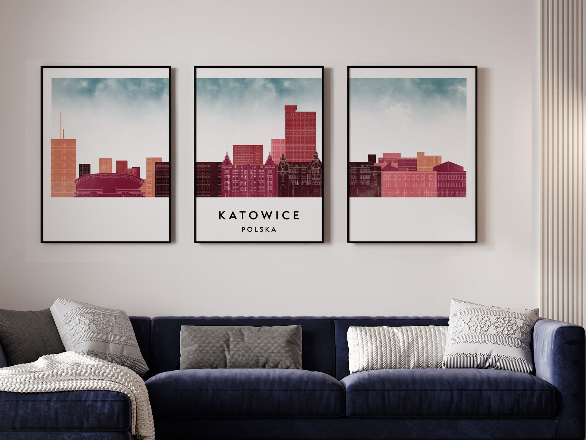 Plakat skylines TRYPTYK Katowice w stylu Watercolor/ Akwarelowym