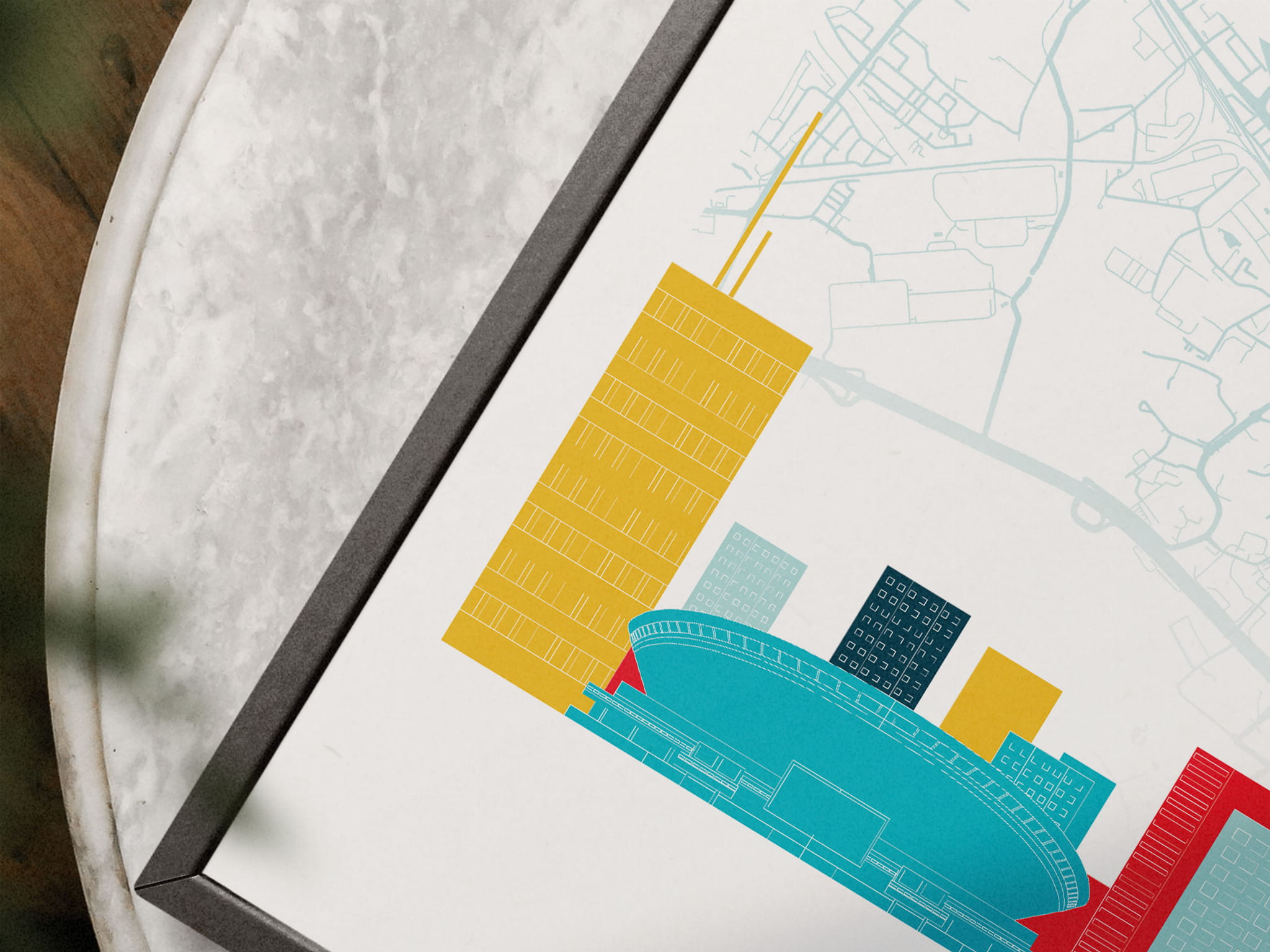 Plakat skylines TRYPTYK Katowice z mapą