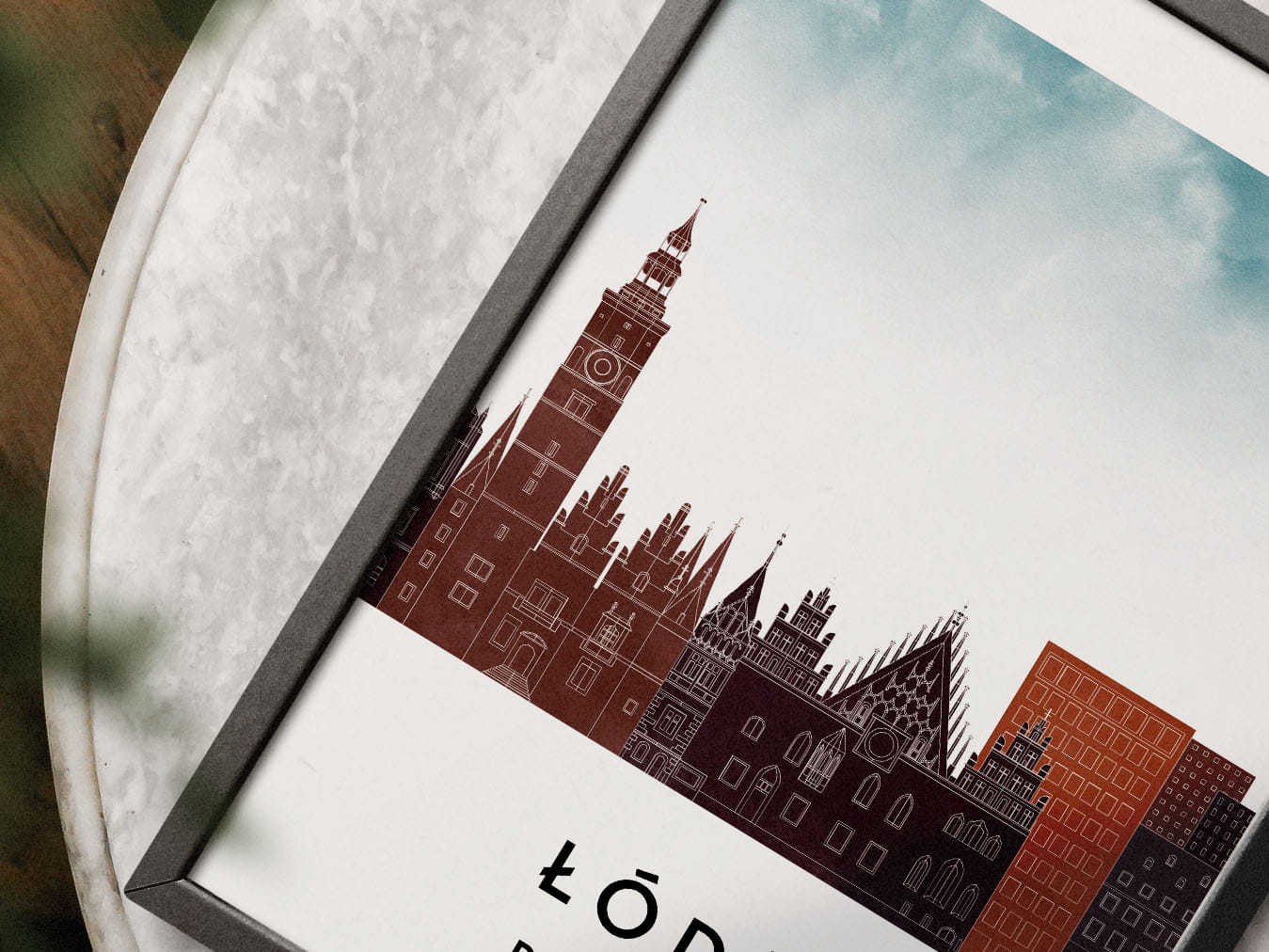 Plakat skylines TRYPTYK Łódź , zestaw 3 plakatów w stylu Watercolor/ Akwarelowym