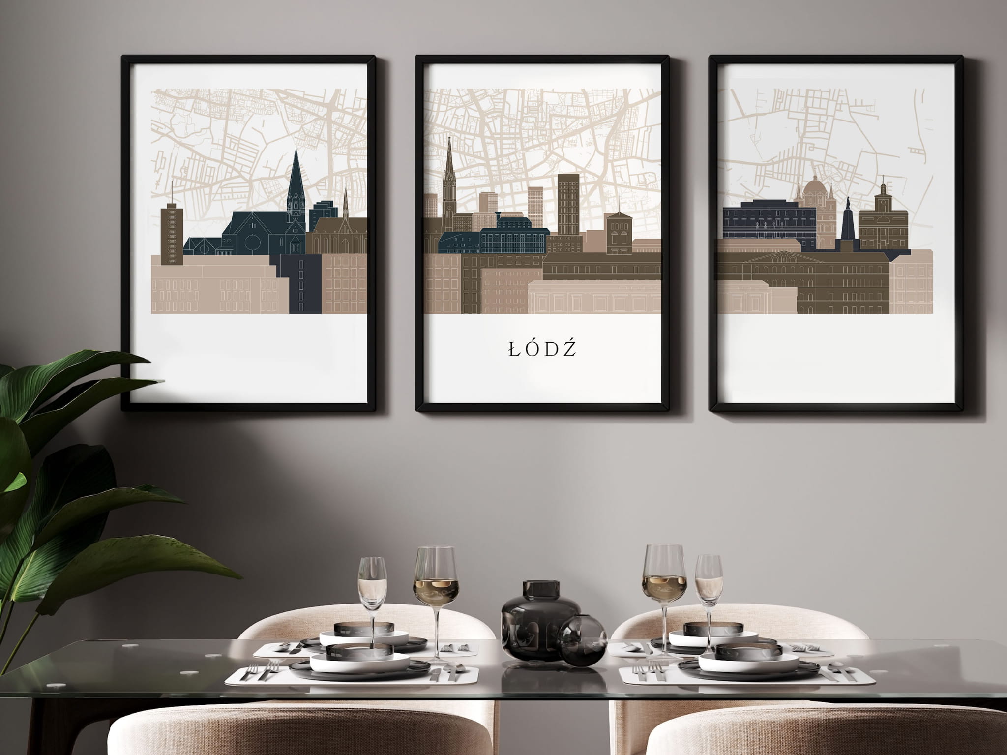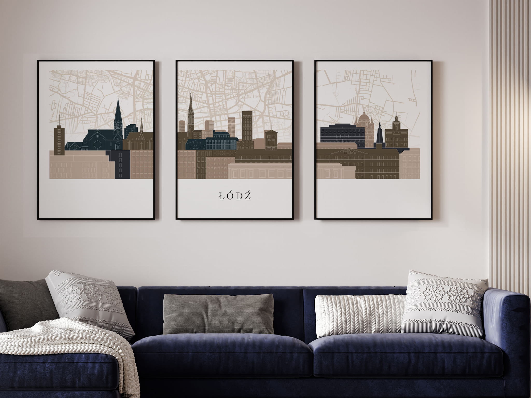 Plakat skylines TRYPTYK Łódź z mapą
