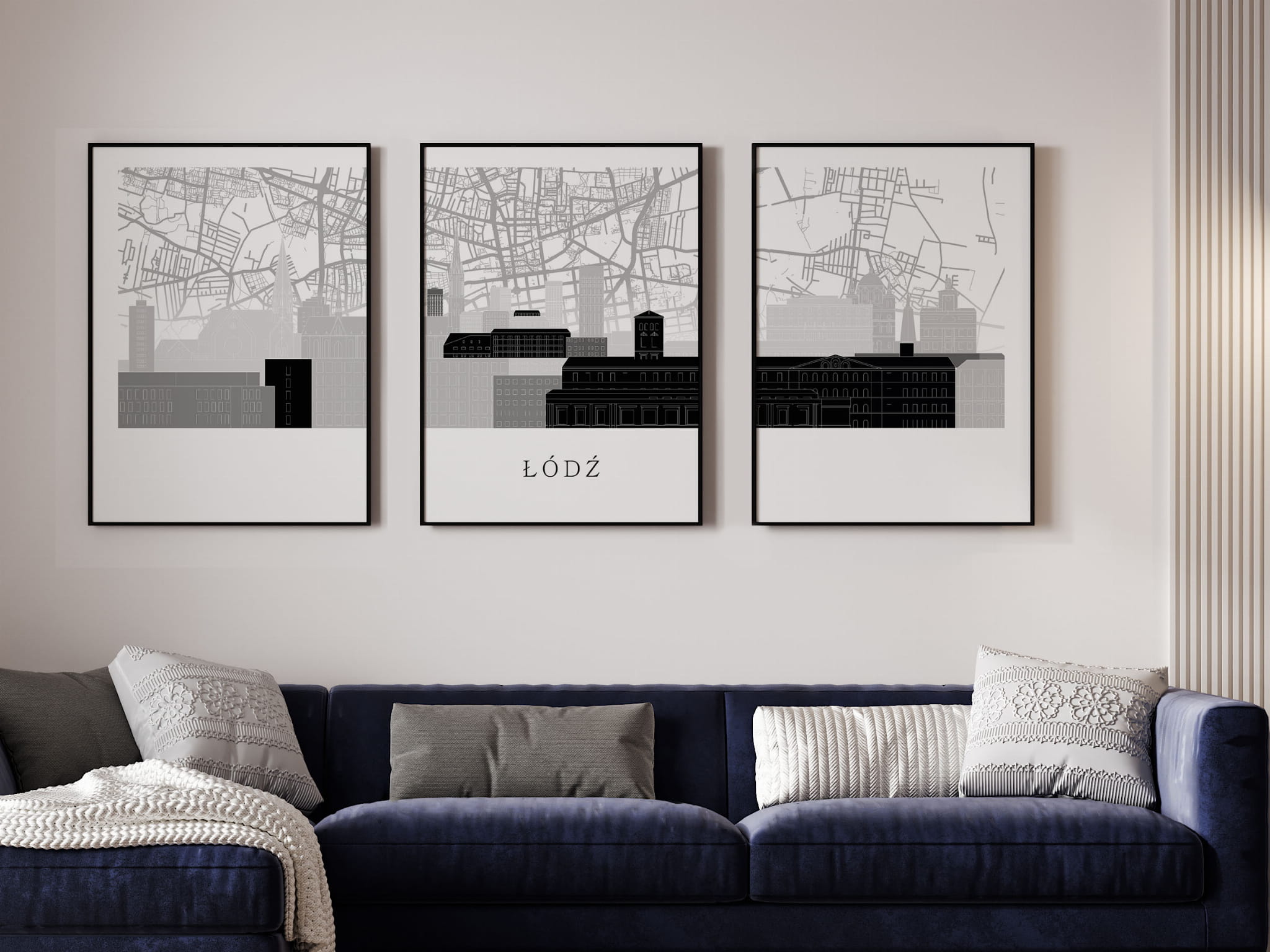 Plakat skylines TRYPTYK Łódź z mapą