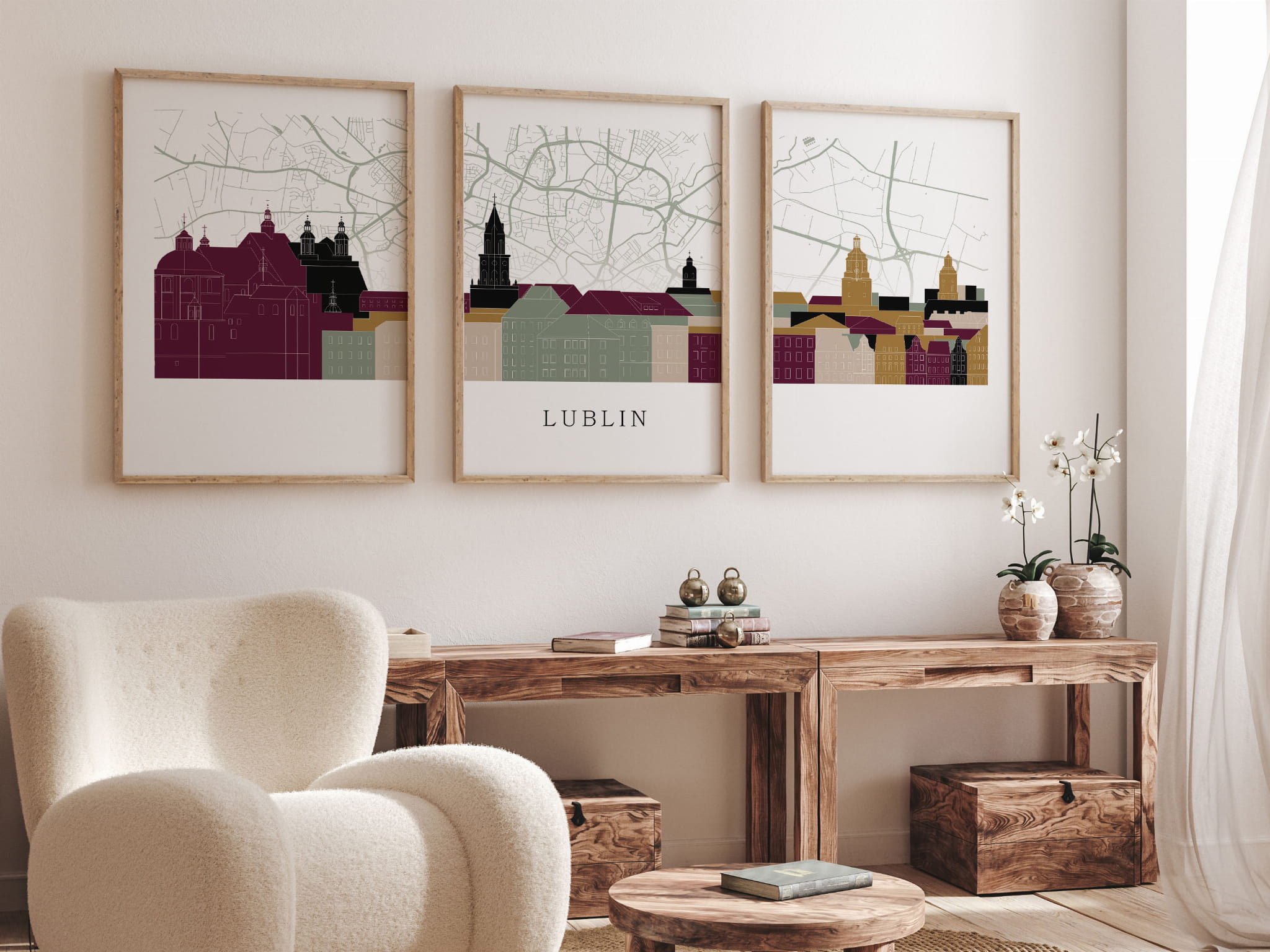 Plakat skylines TRYPTYK Lublin z mapą