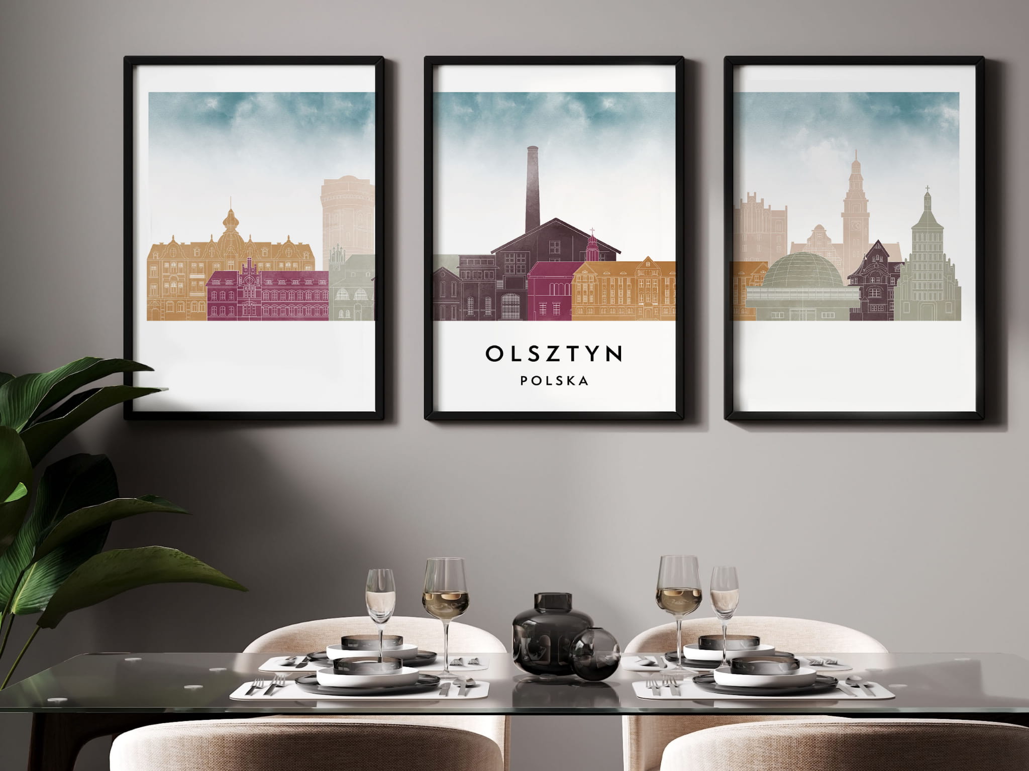 Plakat skylines TRYPTYK Olsztyn w stylu Watercolor/ Akwarelowym