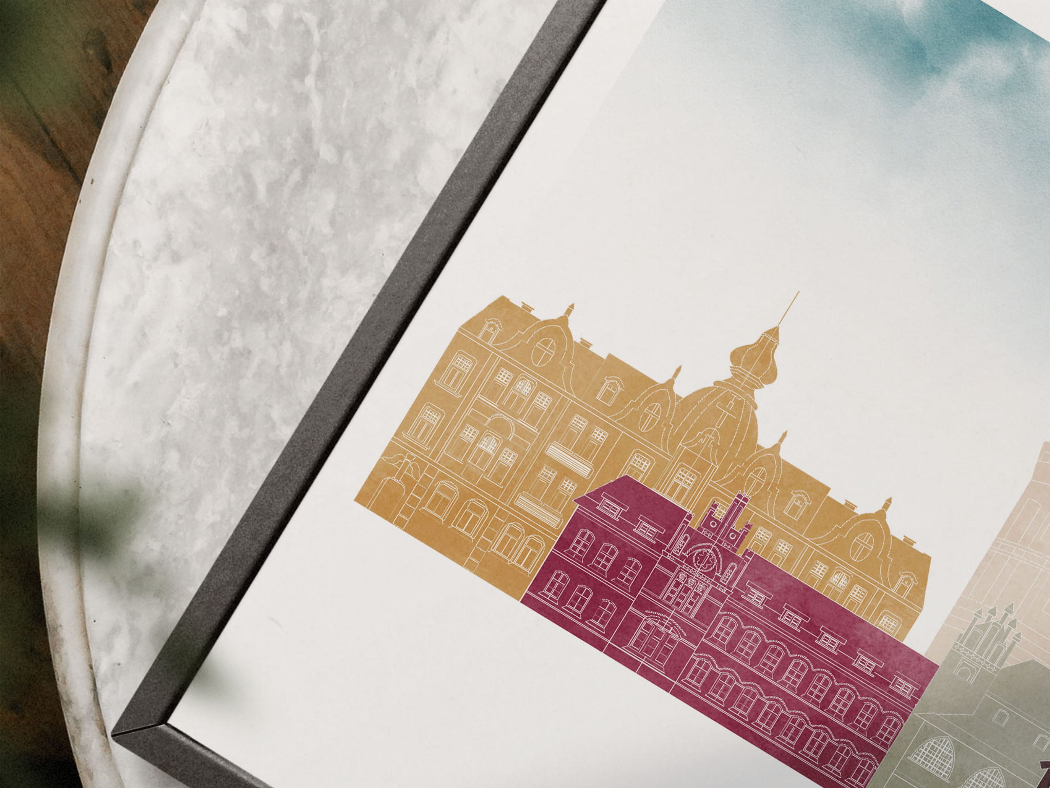 Projektując plakaty z tej serii, postawiliśmy na kolory i charakterystyczne symbole miast.  Taki zestaw podróżniczych plakatów będzie doskonałym uzupełnieniem pomieszczenia.