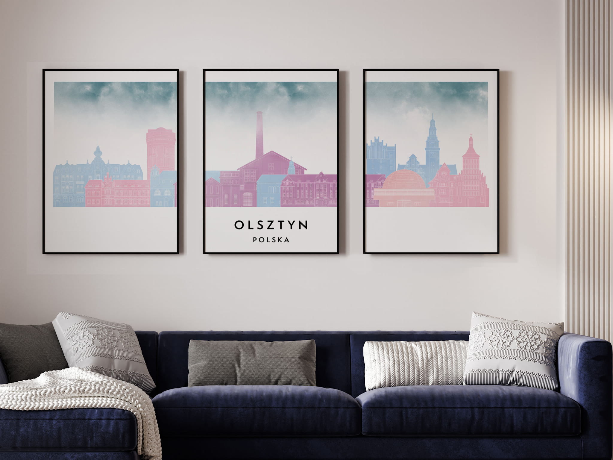 Plakat skylines TRYPTYK Olsztyn w stylu Watercolor/ Akwarelowym