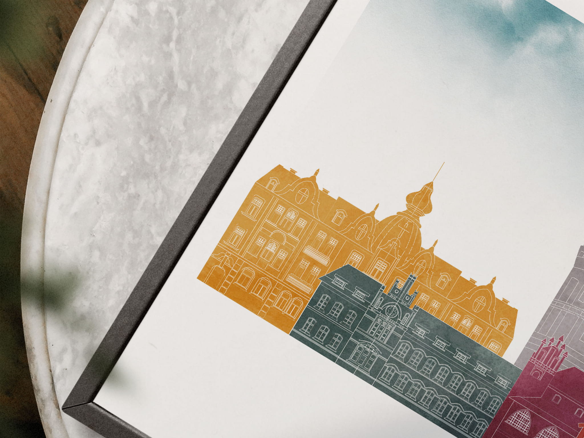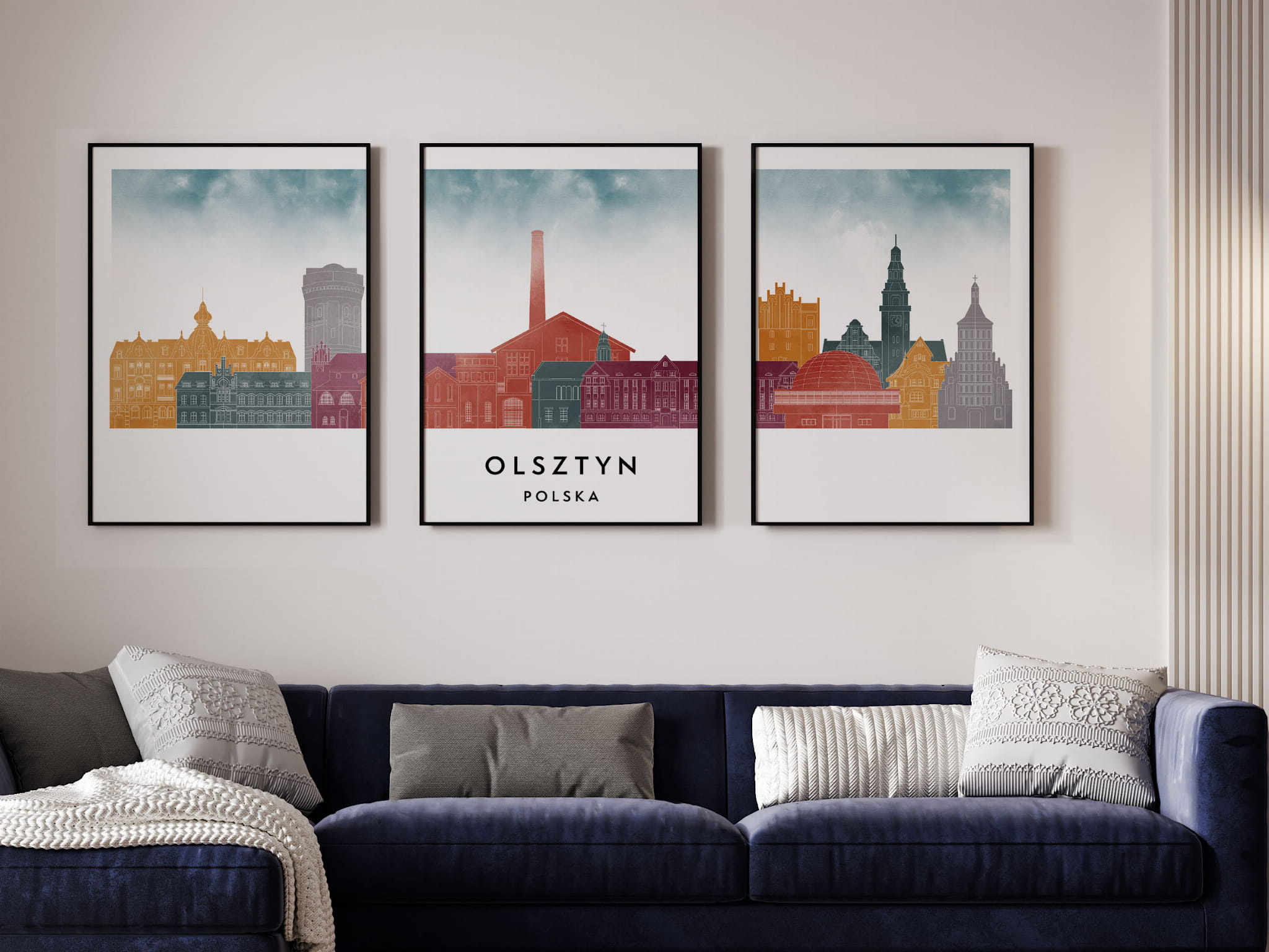 Plakat skylines TRYPTYK Olsztyn w stylu Watercolor/ Akwarelowym